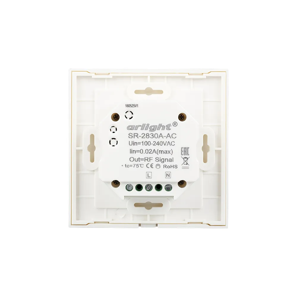 Встраиваемая сенсорная панель для с/д одноцветных лент. Работает вместе с контроллерами серии SR-1009x. Стеклянная Touch-панель, цвет белый. Управление 4 зонами по радиоканалу. Питание 220V. Размер 86x86x29 мм. Аналогичные по дизайну панели в серии SMART (устройства не совместимы).