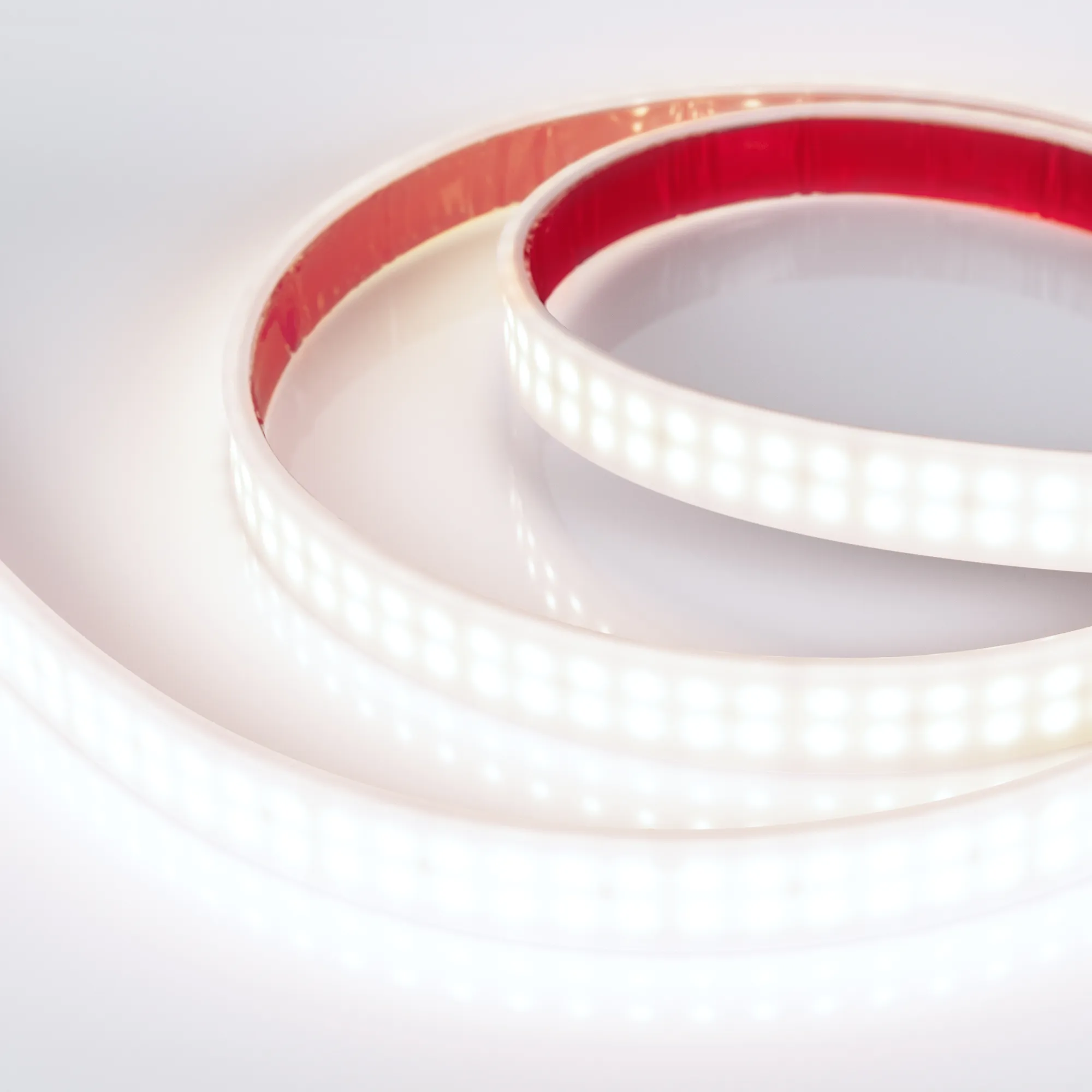 Широкая герметичная IP66 (плата в матовой силикон.трубке) гибкая лента LUX, светодиоды 2x2 (2 ряда) smd 3528, 240шт/м (1200шт на 5м), белая плата 15мм, скотч 3М. Цвет БЕЛЫЙ 5800-6500K.Питание 24В, мощность 19,2 Вт/м (96 Вт на 5м), угол 120°. Размеры 5000x17.5x5.5мм. Мин.отрезок 50мм (12 LED). Цена за 1м.