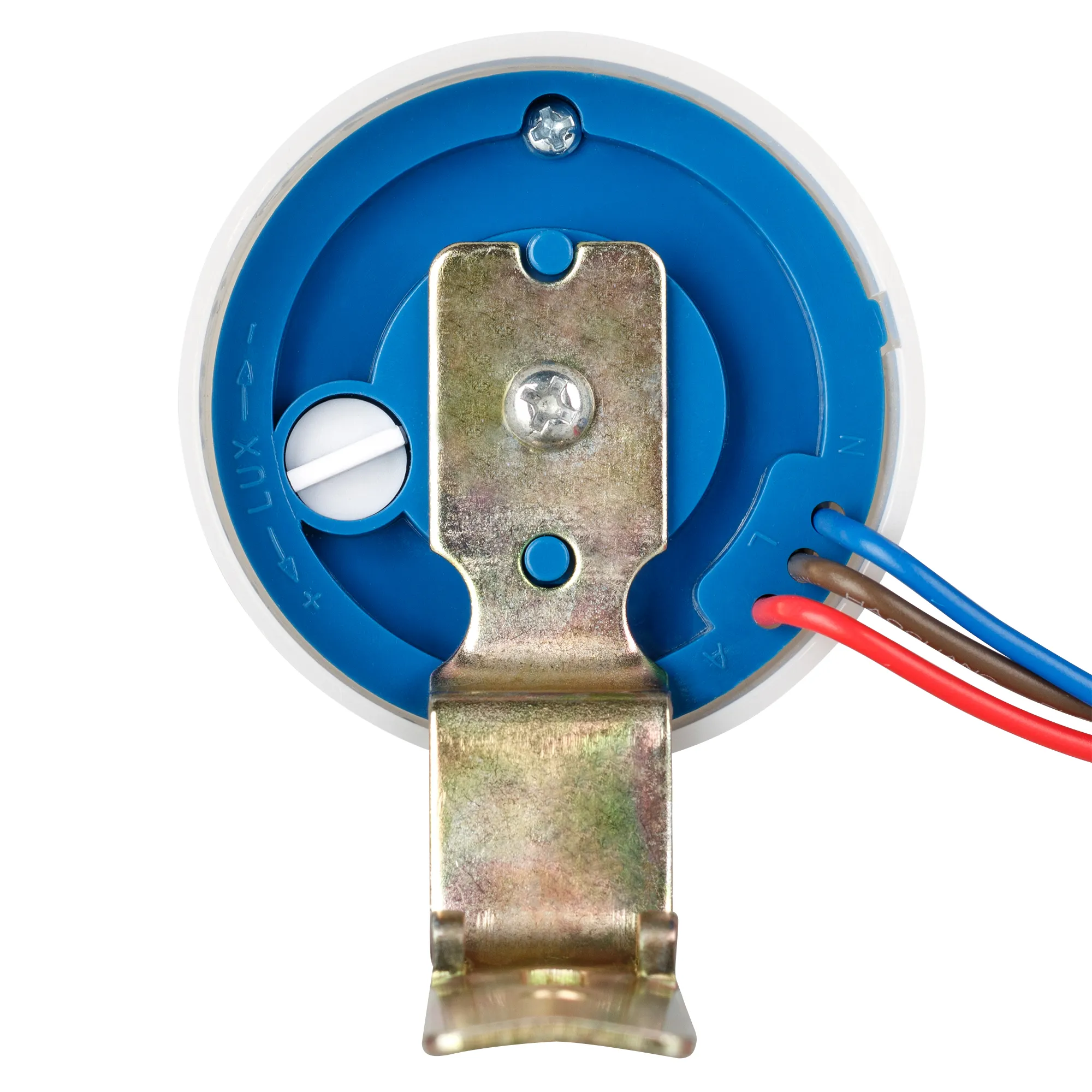 Реле включения освещения в зависимости от уровня внешней освещенности. Порог срабатывания 10-100 люкс (регулируется), мощность 2200 вт, ток 10А, размеры D63xH76,5 мм (без крепления), вес 140 г 220-240VAC
