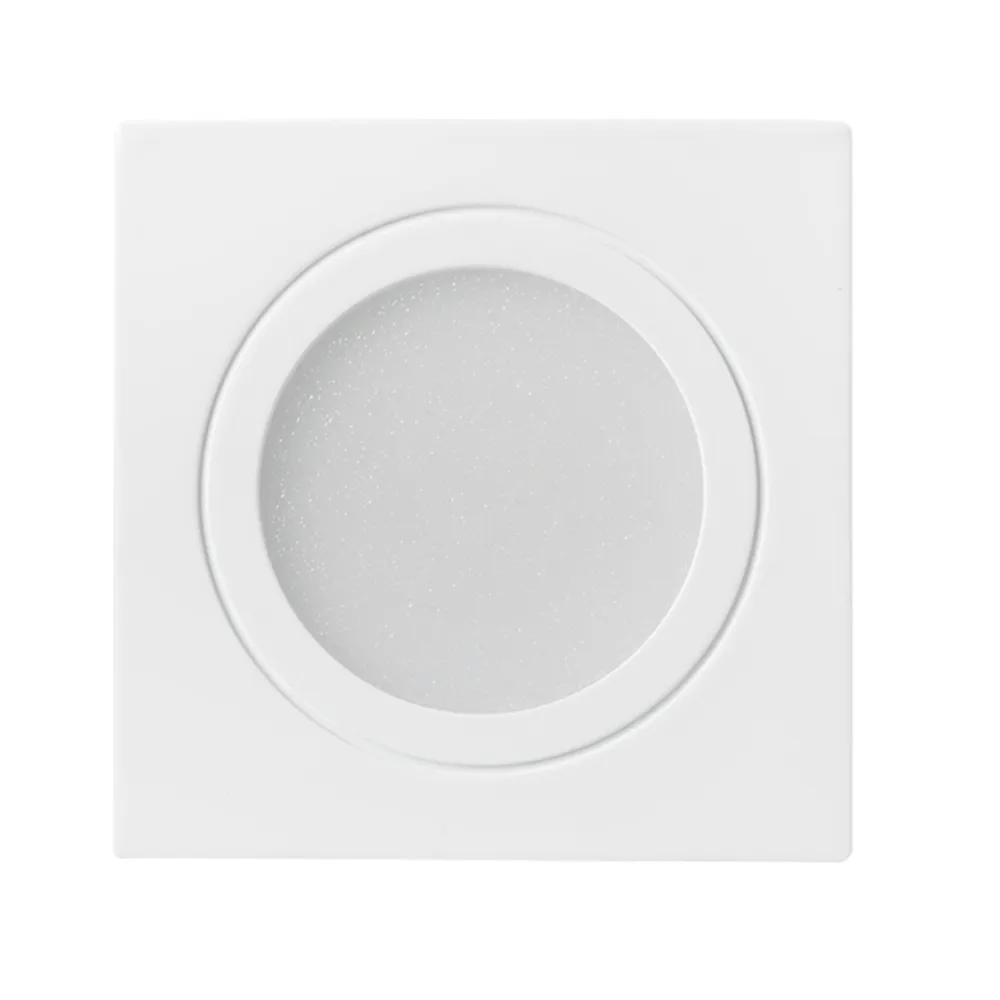 Врезной квадратный мебельный светильник 3Вт, корпус белый алюминий. Цвет ТЕПЛЫЙ БЕЛЫЙ 3000K. Светодиод 1х3W. CRI>80, Св.поток 210-240лм, угол 110°. Питание 180-240VAC, 3Вт, 300mA 9-11V, драйвер в комплекте. Размеры 60x60x24 мм, врезное отверстие d45 мм.