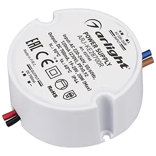 Наши специалисты знают все о продукции Arlight и с радостью помогут Вам выбрать комплектующие к товару "Блок питания ARJ-KE28700R (20W, 700mA, PFC) (Arlight, IP44 Пластик, 5 лет)", или другие товары из раздела "Герметичные [IP44, пластик]".