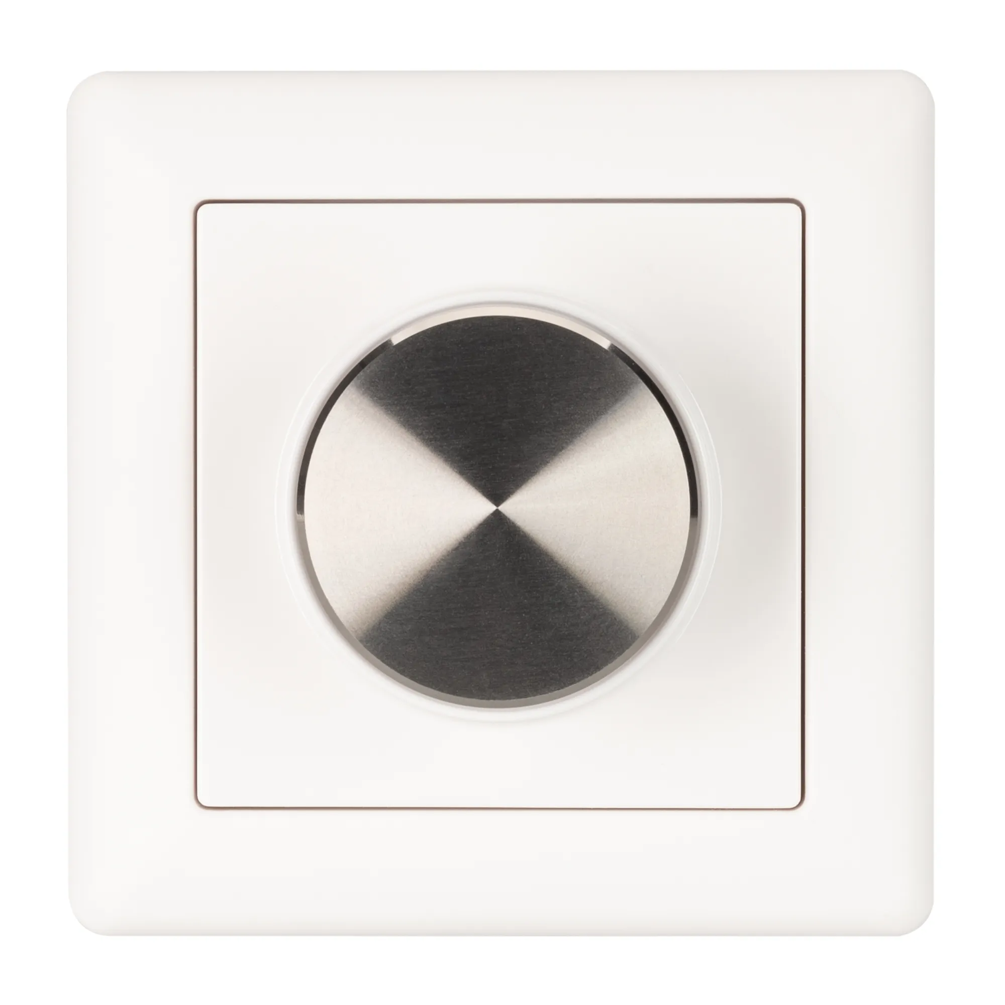 Встраиваемая роторная белая пластиковая панель для работы по протоколу DALI. Диммирование и управления цветом свечения (MIX, CCT, HCL) 1 группы или широковещательная (broadcast). Система команд DT8, при адресации 2 каналов (CW+WW) на 1 адрес. Установка номера группы выполняется переключателями на корпусе. Подсветка регулятора во включенном состоянии. Питание от шины DALI (4 мА). Стандартная рамка входит в комплект поставки.