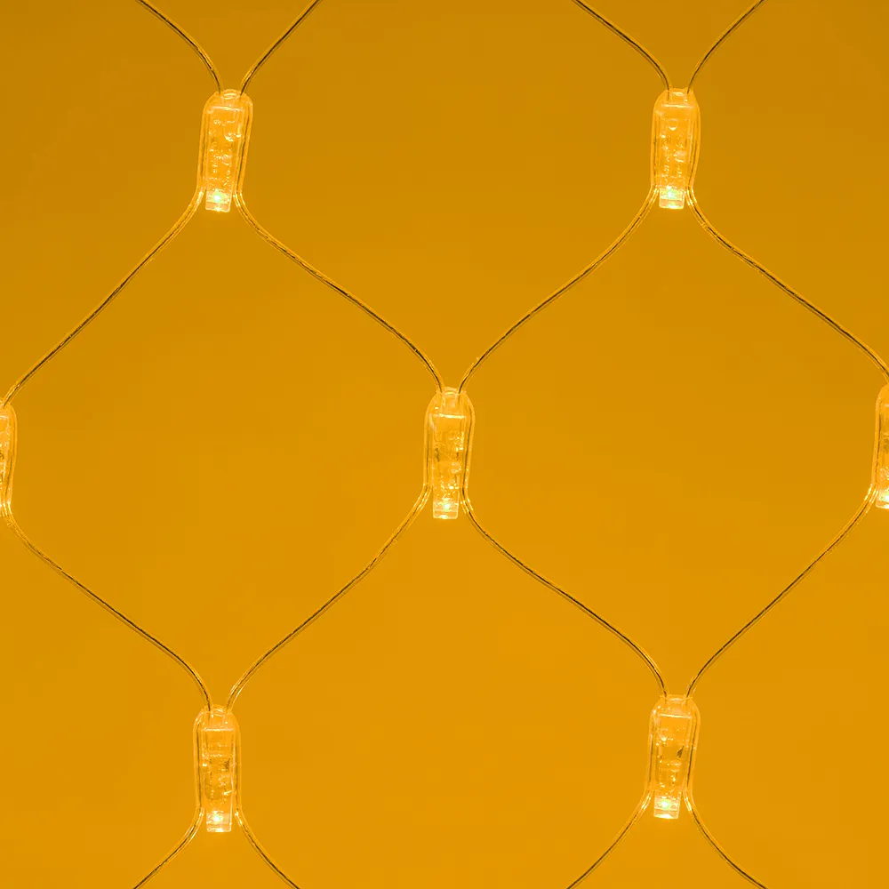 Светодиодная сеть Classic. 2000x1500 (длина 2000 мм, высота 1500 мм). Цвет свечения ЖЕЛТЫЙ. 288 светодиодов размером 7 мм со статическим и 8 динамическими эффектами свечения с резким световым рисунком (прозрачная вогнутая линза). Провод прозрачный, ПВХ. Питание 230 В, Мощность 18 Вт,защита IP65, применение в помещении и на улице под навесом Аксессуары для подключения и выбора режима свечения в комплекте.