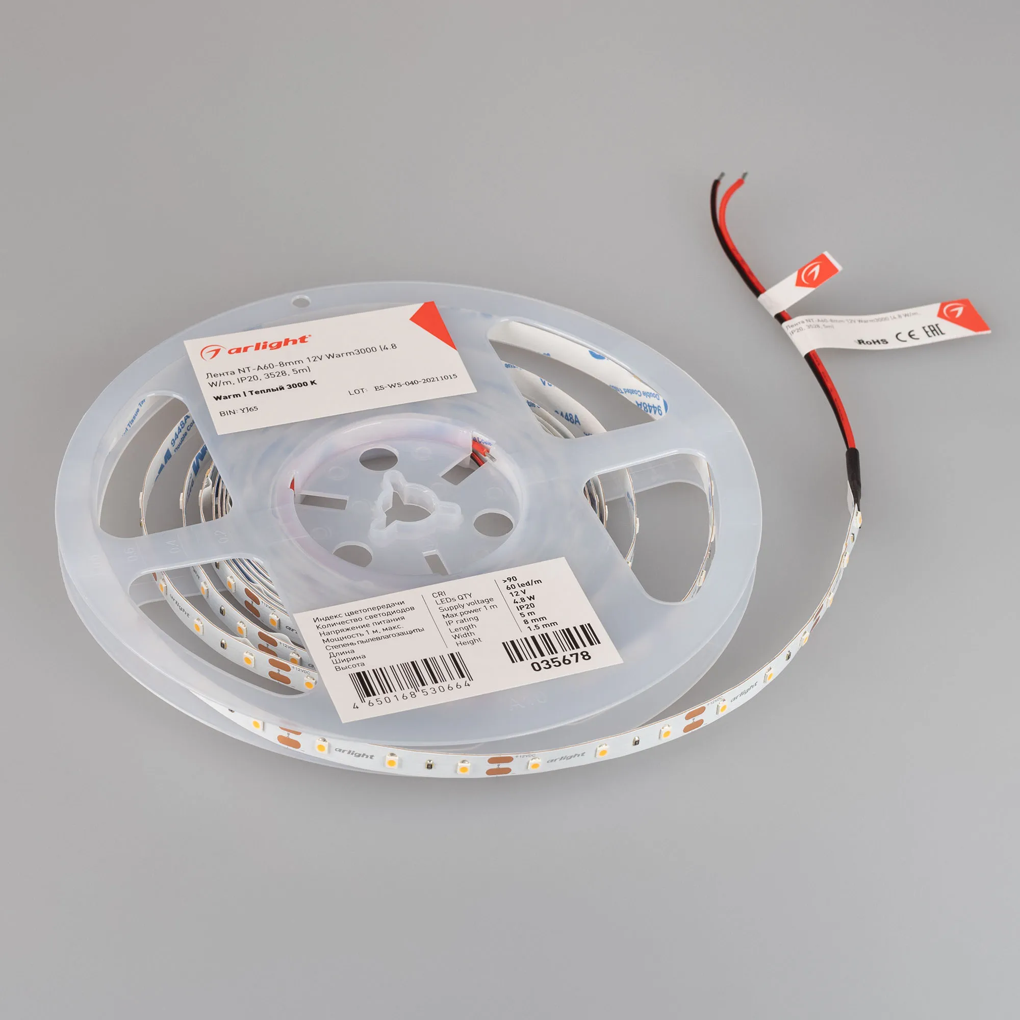 Лента светодиодная NT-A60-8mm 12V Warm3000 (4.8 W/m, IP20, 3528, 5m) (Arlight, Открытый)
