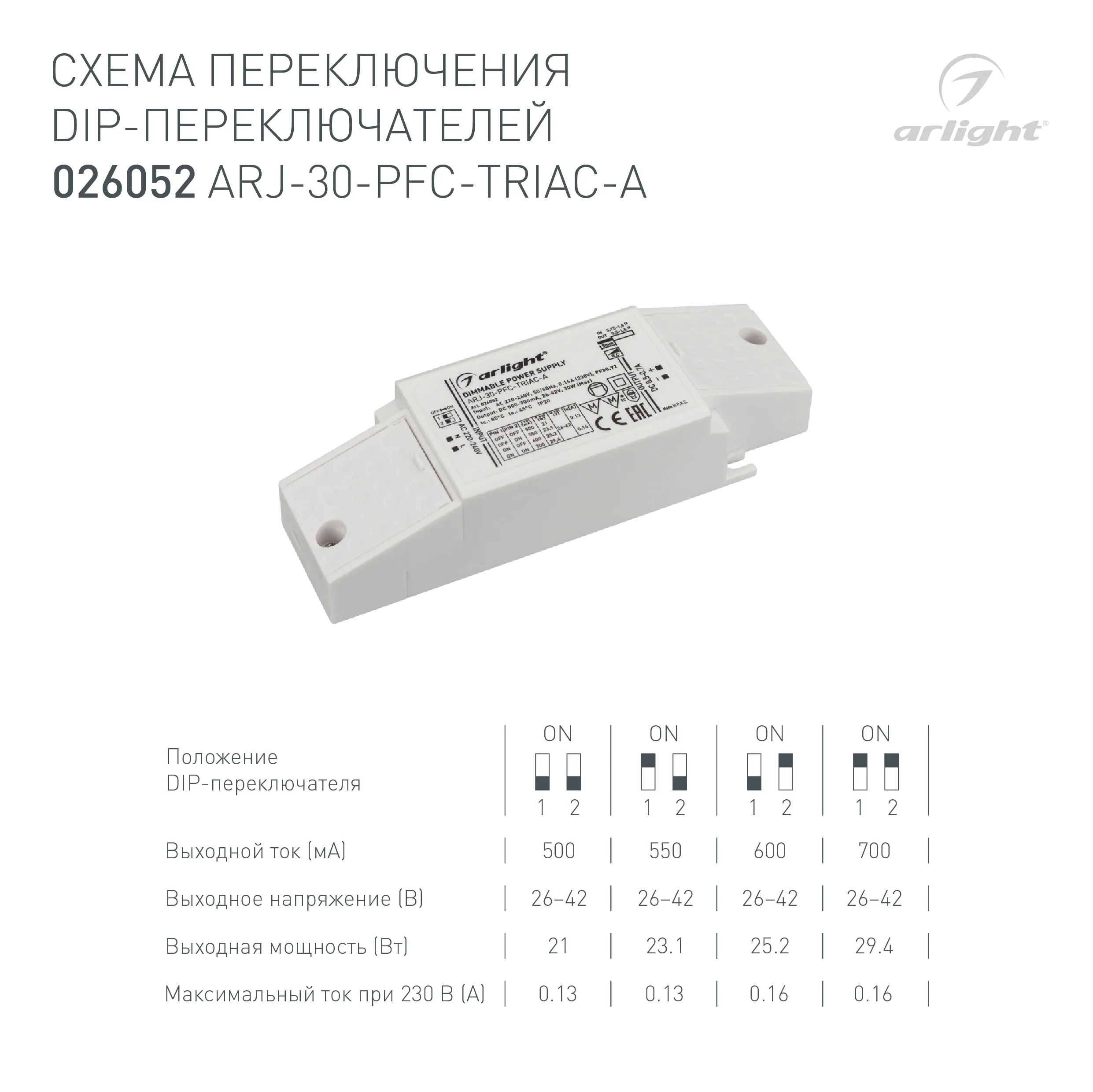 Блок питания ARJ-30-PFC-TRIAC-A (30W, 500-700mA) (Arlight, IP20 Пластик, 5 лет)