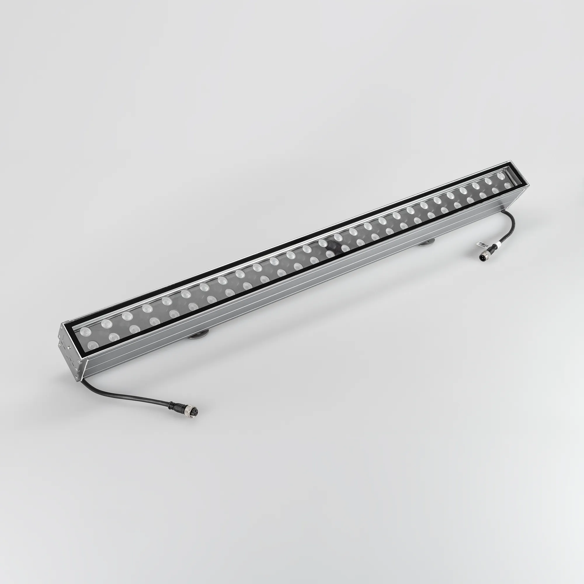 Поставка под заказ от 30 шт. Линейный светодиодный прожектор. Мощность 54W, напряжение питания AC 230V. Светодиоды OSRAM 54 штуки. Цвет светодиодов дневной белый 4000K, световой поток 80Lm/Watt, угол рассеивания 30°. Корпус: алюминиевый сплав и армированное стекло. Цвет корпуса серый, степень влагозащиты IP65. Габариты 1000x128x70мм. Гарантия 3 года с даты продажи.