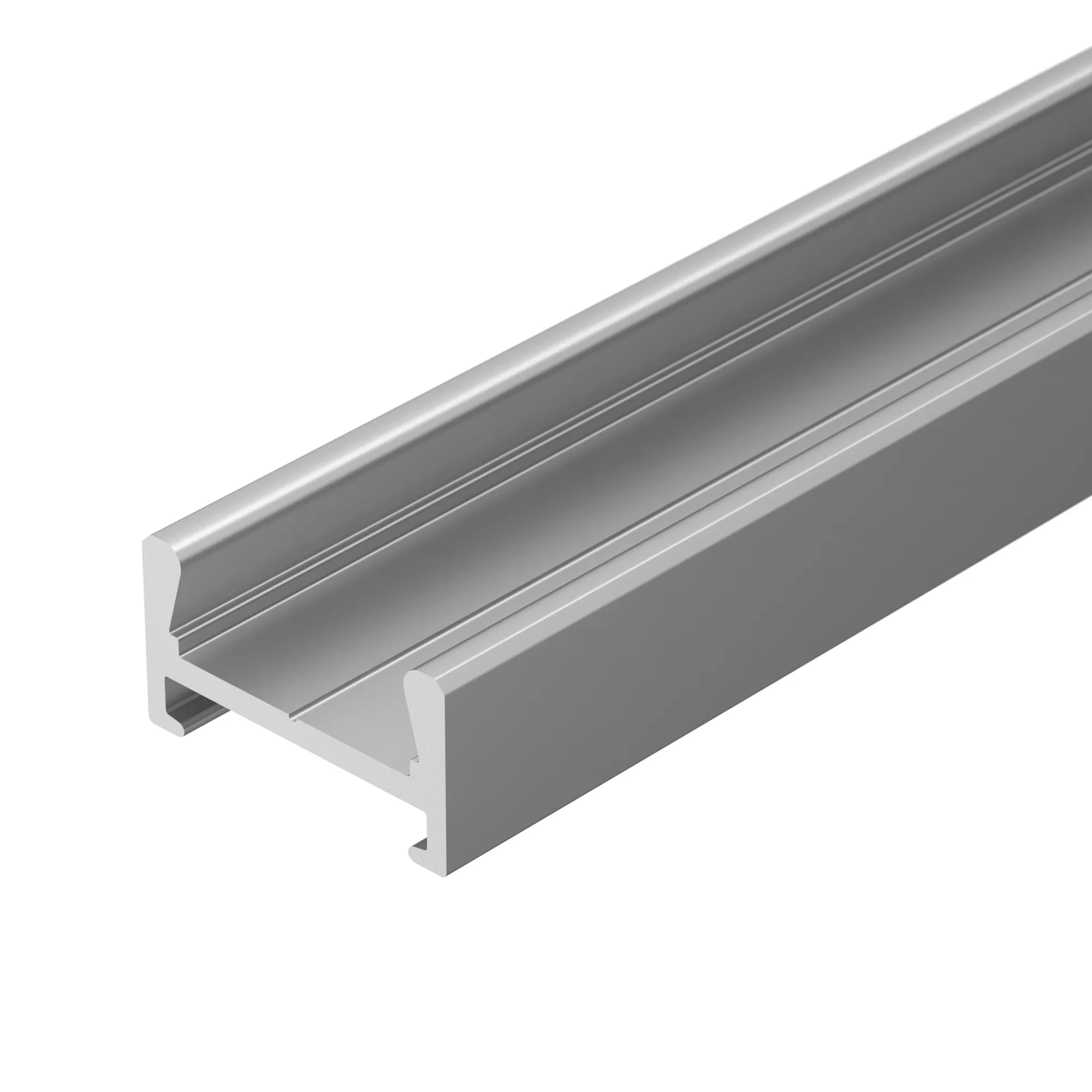 Алюминиевый анодированный профиль для светодиодных лент и линеек, со скрытым монтажом на скобы. Габаритные размеры (L×W×H): 2000x16x9 мм. Ширина площадки для ленты 11 мм. Экраны, заглушки и другие аксессуары приобретаются отдельно. Цена за 1 метр.