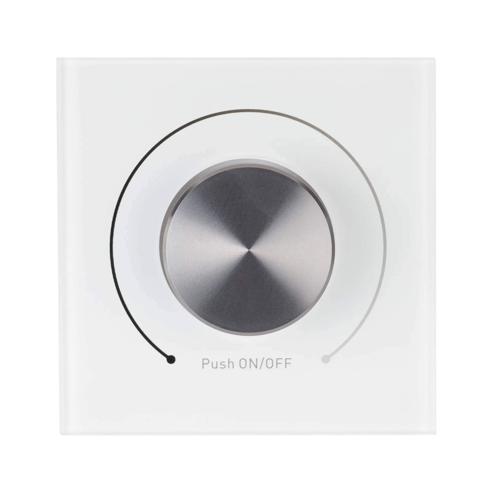 Встраиваемая роторная панель с выходом DALI. Установки адреса нет (Broadcast). Питание 100-240 VAC, встроенный источник тока для DALI-линии (выход 125 mA). До 32 устройств DALI. Настраиваемый режим ограничения минимальной яркости.