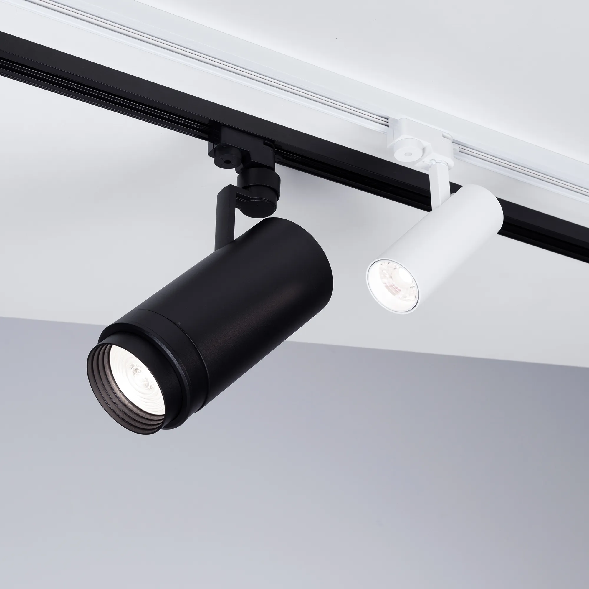 Поставка под заказ от 100 шт. Светильник подвесной для треков/шин 2 провода, 20Вт. Цвет свечения БЕЛЫЙ 6000K, световой поток 1600-2000лм, регулируемый угол 20-60°, CRI>90. Корпус круглый, металл, цвет черный, IP20. Размеры DxHxL Ø88x200x162мм. Входное напряжение AC220-240V, мощность 20Вт. Драйвер встроенный (30-42V, 500mA).