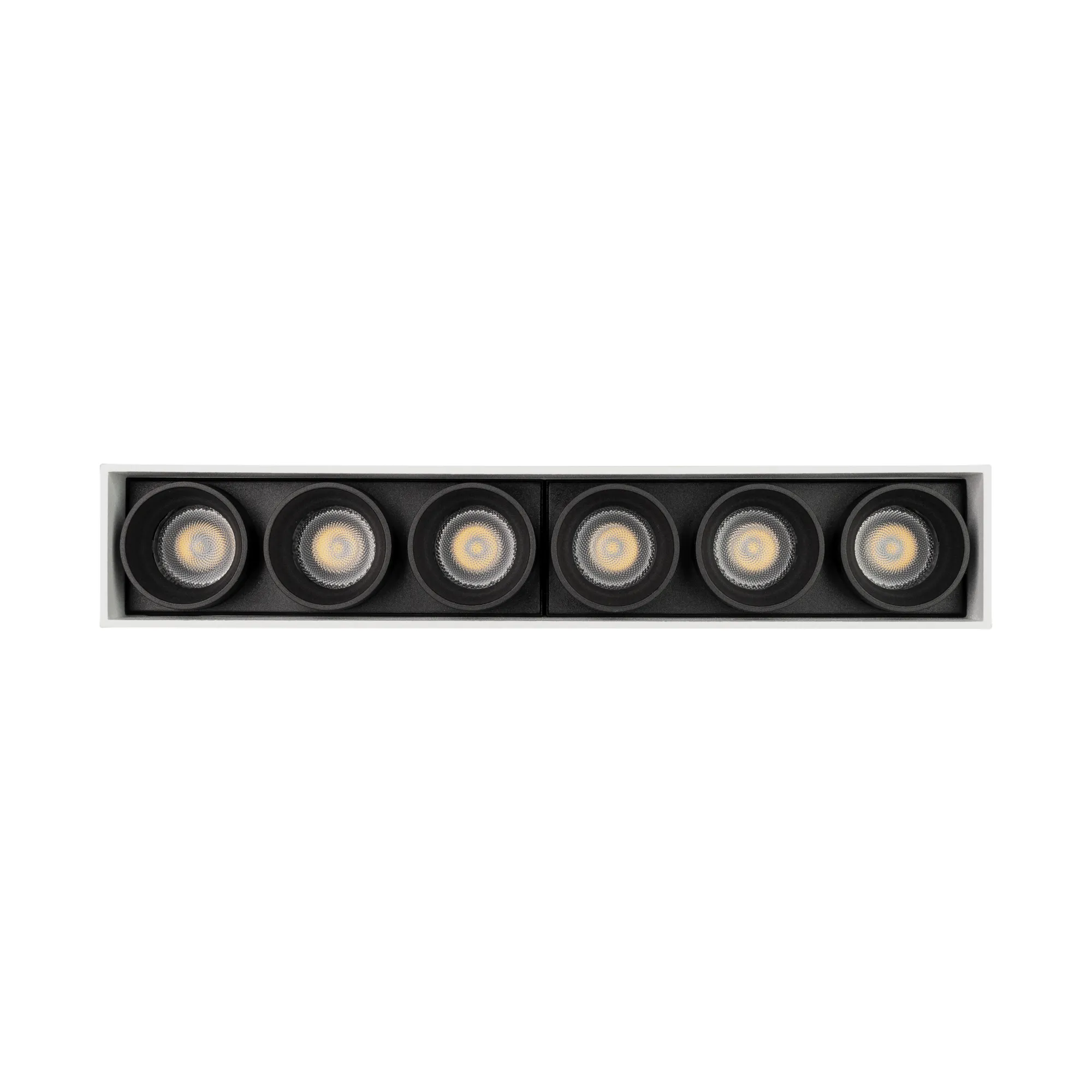 Накладной интерьерный светильник. Мощность 15 Вт, св. поток 958 лм, 68 лм/Вт, дневной 4000 K, CRI>98, угол 30°, напряжение питания 230 В. Белый квадратный корпус из алюминия, степень защиты IP20. Размер: длина 186 мм, ширина 35 мм, высота 88 мм. Монтаж накладной. Драйвер 13-21 В, 700 мА, пульсация <5%.