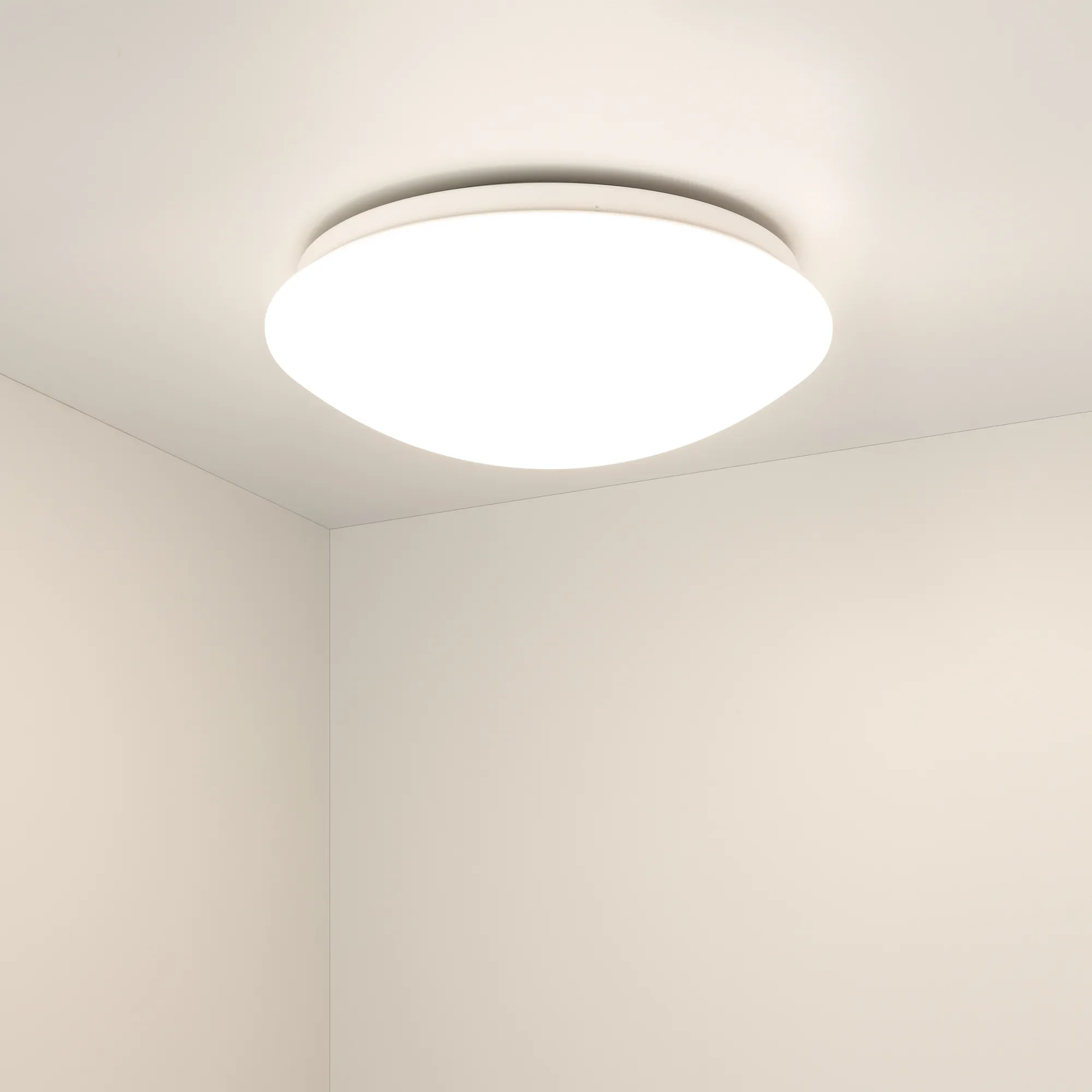 Накладной светильник. Мощность 12Вт, св. поток 950 лм, 85лм/Вт, дневной 4000 K, CRI>80, угол 120°, напряжение питания 230 В. Круглый пластиковый корпус, плафон пластик, степень защиты IP44. Размер: диаметр 280 мм, высота 100 мм. Монтаж накладной. Драйвер встроенный, пульсация <5%.