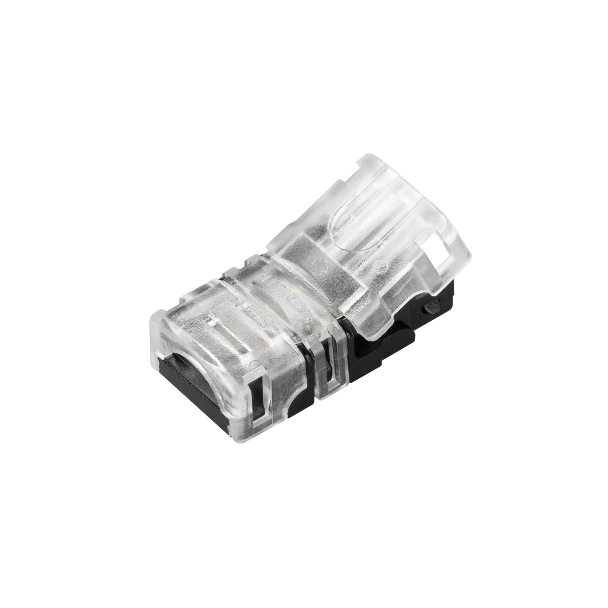 Одиночный коннектор (без провода) для подключения питания к одноцветным герметичным (IP54/IP65) лентам SE (заливка силиконом сверху) шириной 8 мм. Очистка провода питания (0,34-0,75 мм2) от изоляции не требуется. Материал - пластик. Максимальный допустимый ток 3 А, напряжение 3-24 В. Размер коннектора 24.27x12.6x7.66мм. Цена за 1 шт.