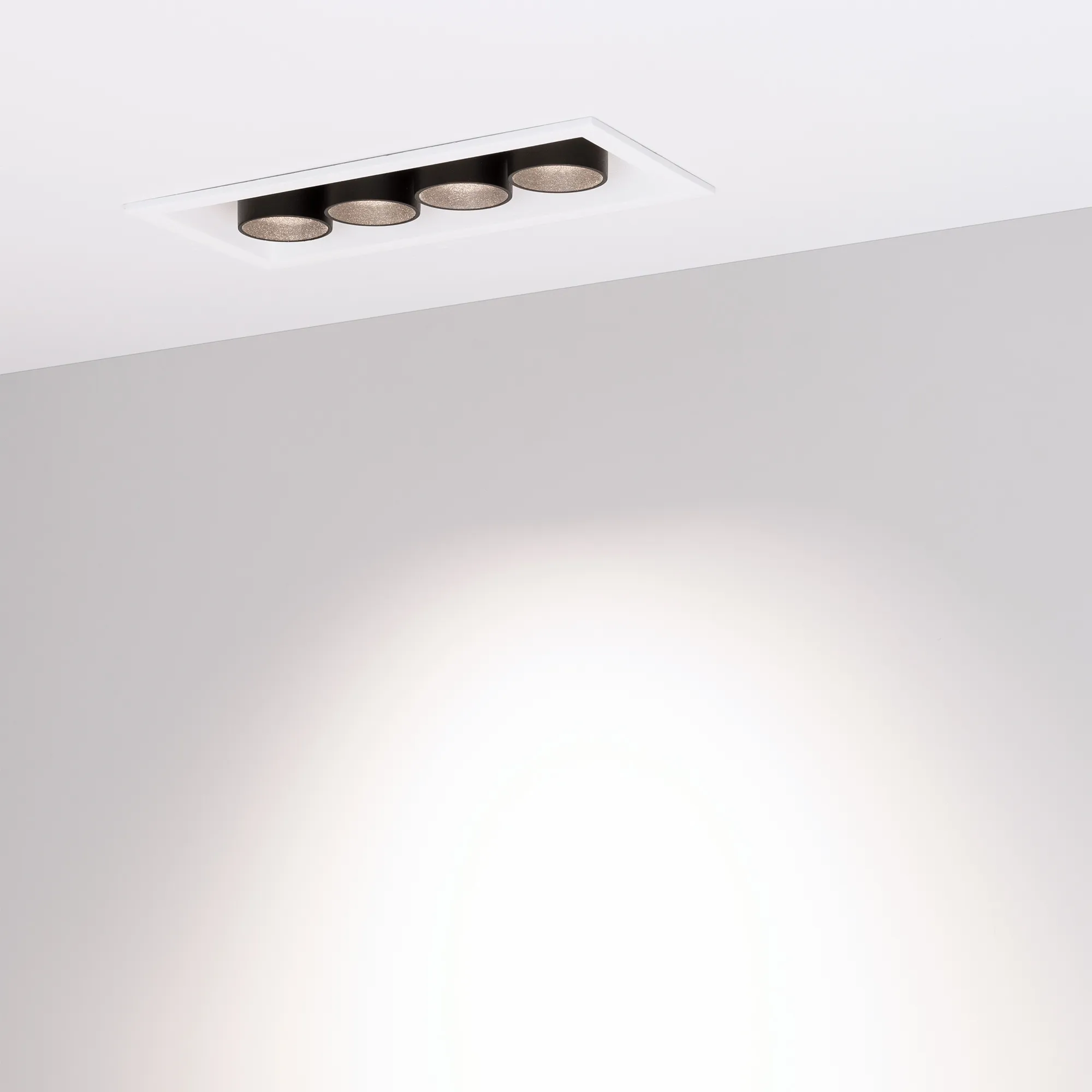 Встраиваемый поворотный светильник. Мощность 10 Вт, св. поток 750 лм, 75 лм/Вт, дневной 4000 K, CRI>98, угол 30°, напряжение питания 230 В. Белый прямоугольный корпус из алюминия, экран PMMA, степень защиты IP20. Размер: длина 150 мм, ширина 67 мм, высота 50 мм. Монтаж встраиваемый, установочное отверстие длина 145 мм, ширина 60 мм. Драйвер 9-14 В, 700 мА, пульсация <1%.