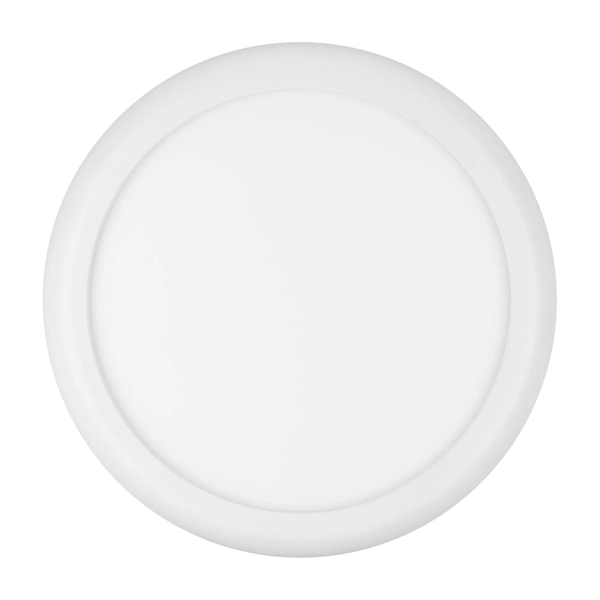 Накладной/встраиваемый светильник с изменяемой мощностью и цветовой температурой. Мощность 12-18 Вт, св. поток 1000-1700 лм, 75-90 лм/Вт, теплый 3000 K, дневной 4000K, белый 6000K, CRI>80, угол 120°, напряжение питания 230 В. Белый круглый корпус из пластика, экран поликарбонат, степень защиты IP44. Размер: диаметр 220 мм, высота 21,5 мм. Монтаж накладной/встраиваемый, установочное отверстие: диаметр 120-200 мм (регулируемое). Драйвер встроенный, пульсация <1%. Комплект крепежа для встраиваемого монтажа поставляется отдельно.