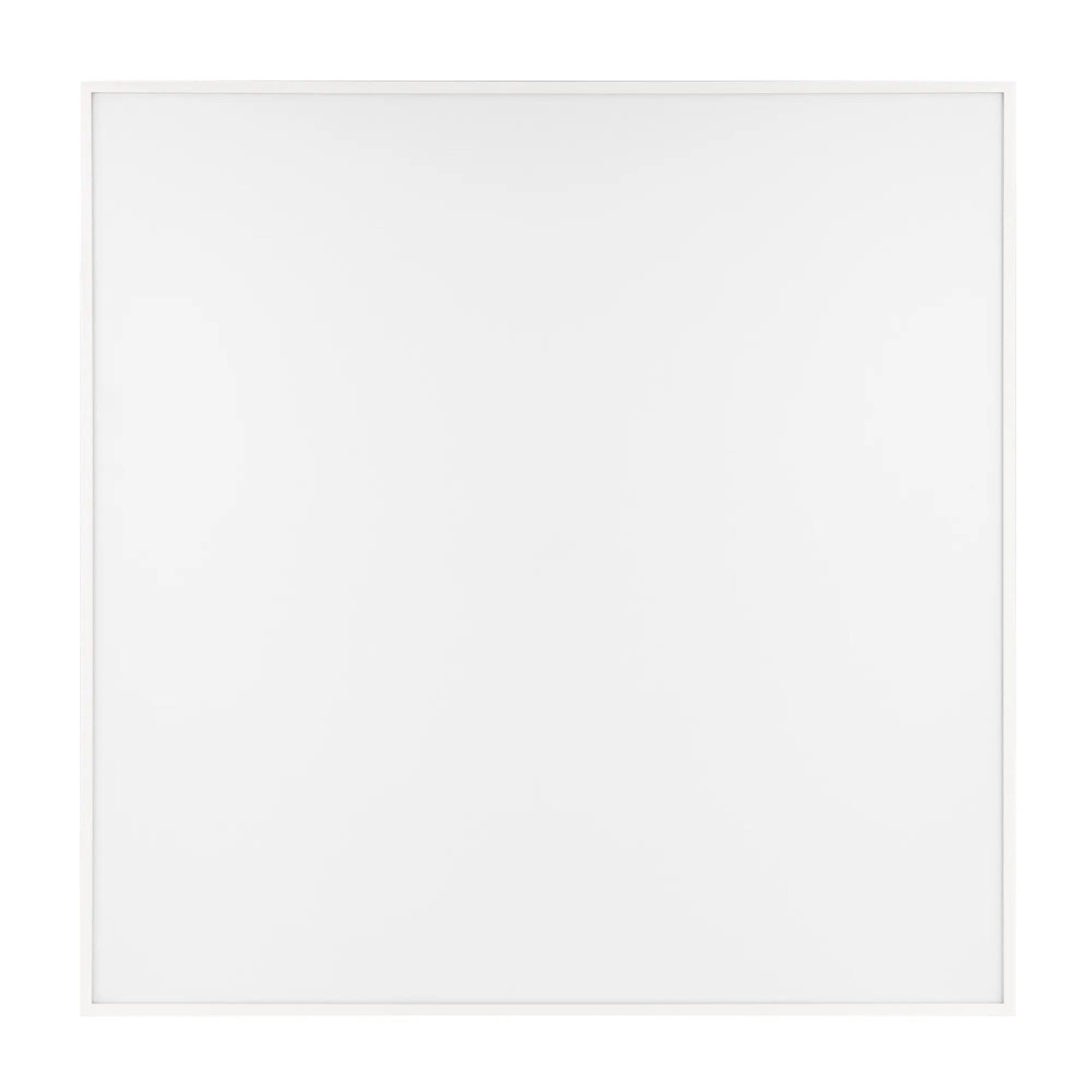 Накладной светильник. Мощность 50 Вт, св. поток 4100-4400 лм, 80-90 лм/Вт, дневной 4000 K, CRI>90, угол 120°, напряжение питания 230 В. Белый квадратный корпус из алюминия, экран PC, степень защиты IP40. Размер: длина 500 мм, ширина 500 мм, высота 64 мм. Монтаж накладной. Драйвер 27-42 В, 1200 мА, пульсация <5%.
