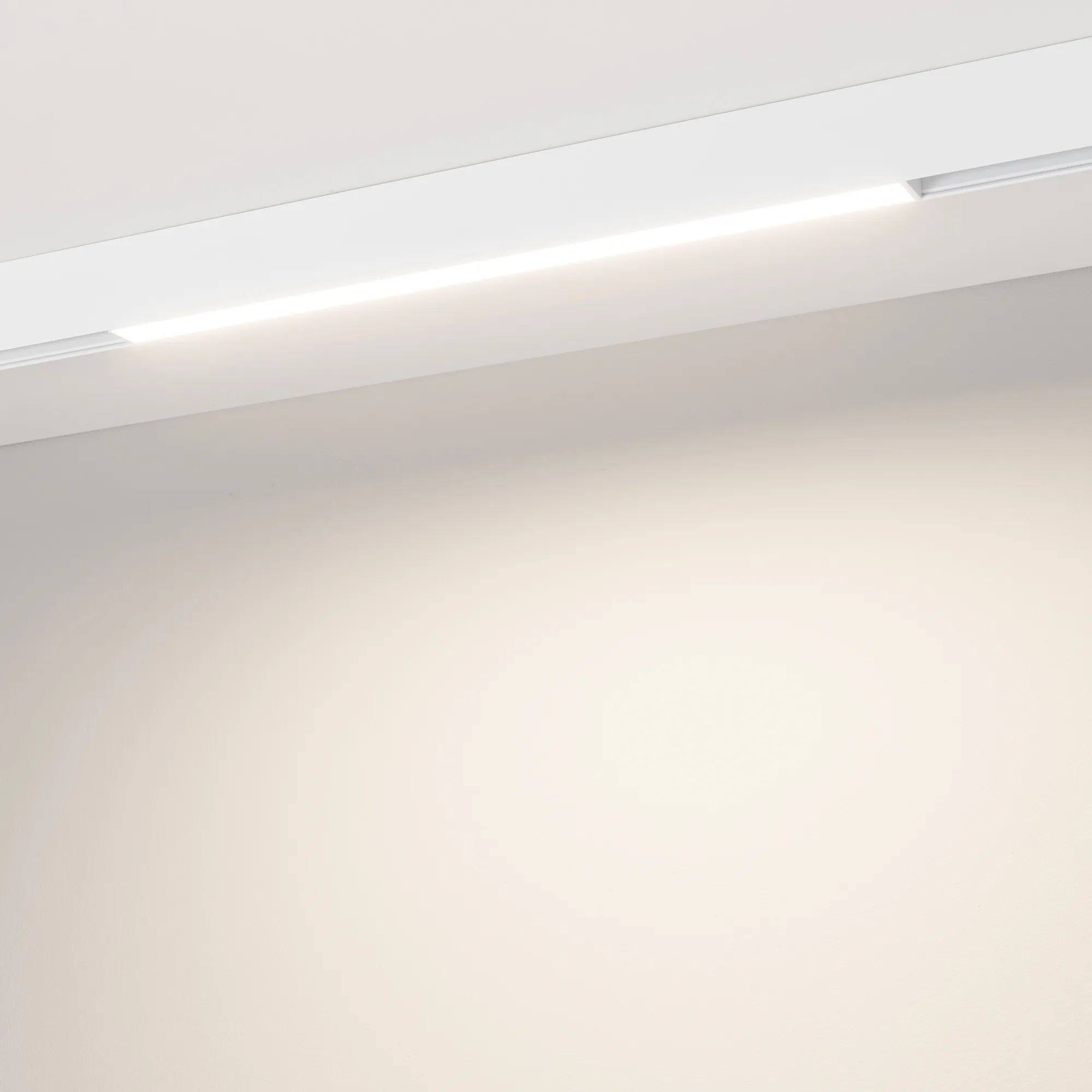 Светильник для магнитных треков MAG-ORIENT шириной 26 мм. Мощность 16 Вт, св. поток 860 лм, 54 лм/Вт, дневной 4000 K, CRI>90, угол 80°, напряжение питания 48 В. Белый прямоугольный корпус из металл, экран поликарбонат, степень защиты IP20. Размер: длина 462 мм, ширина 22 мм, высота 42 мм. Монтаж на трек MAG-ORIENT. Пульсация <1%.