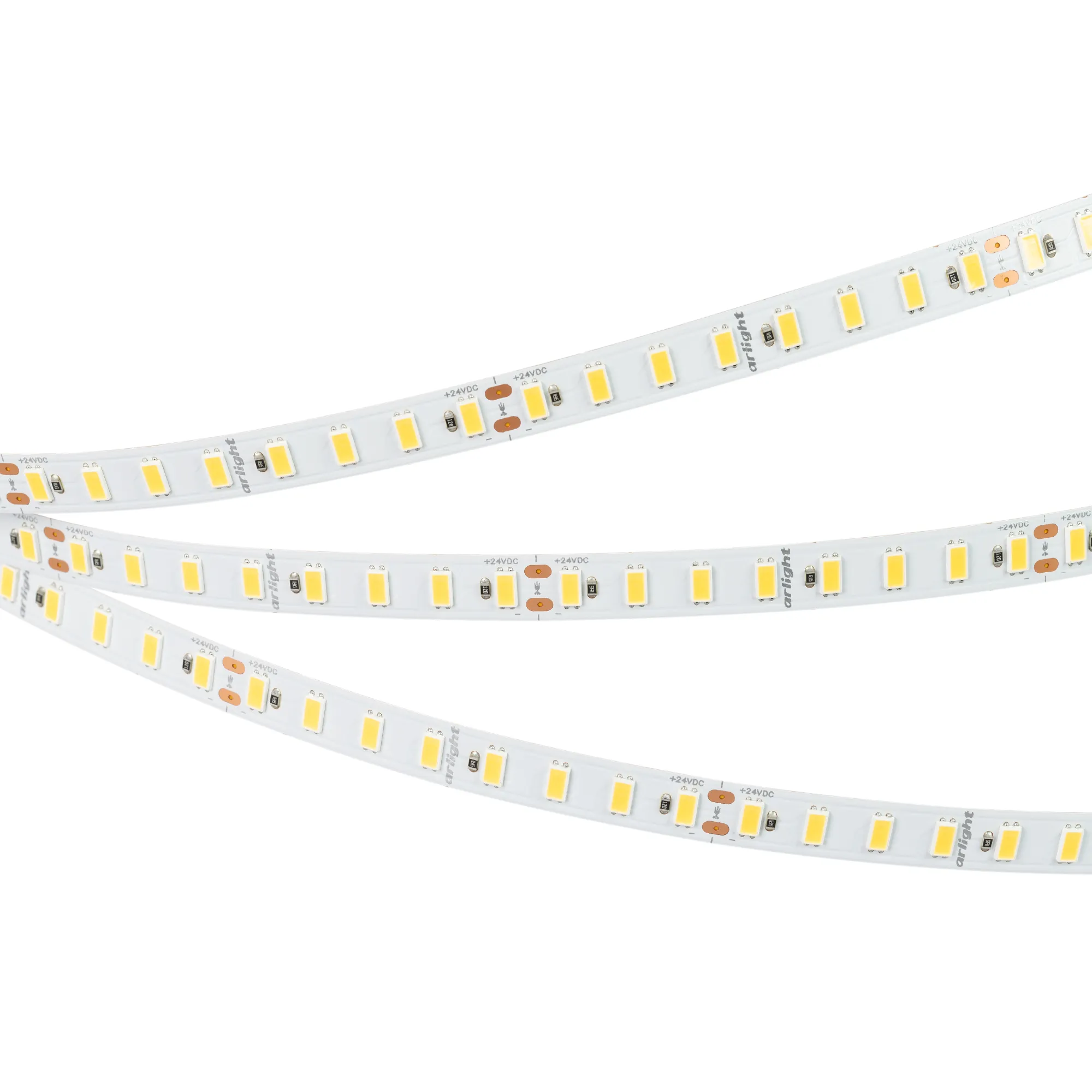 Светодиодная высокоэффективная лента ULTRA серии C112. Светодиоды SMD 5630, 112 шт/м, белая плата шириной 10 мм, скотч 3M. Цвет ТЕПЛЫЙ 2700K, высокая световая эффективность 160 лм/Вт, индекс цветопередачи CRI>80, угол 120°. Питание 24 В, мощность 19.2 Вт/м (96 Вт на 5 м). Размеры 5000x10x1.3 мм. Мин. отрезок 71.43 мм, 8 светодиодов. Цена за 1 м. Обязательна установка на профиль.