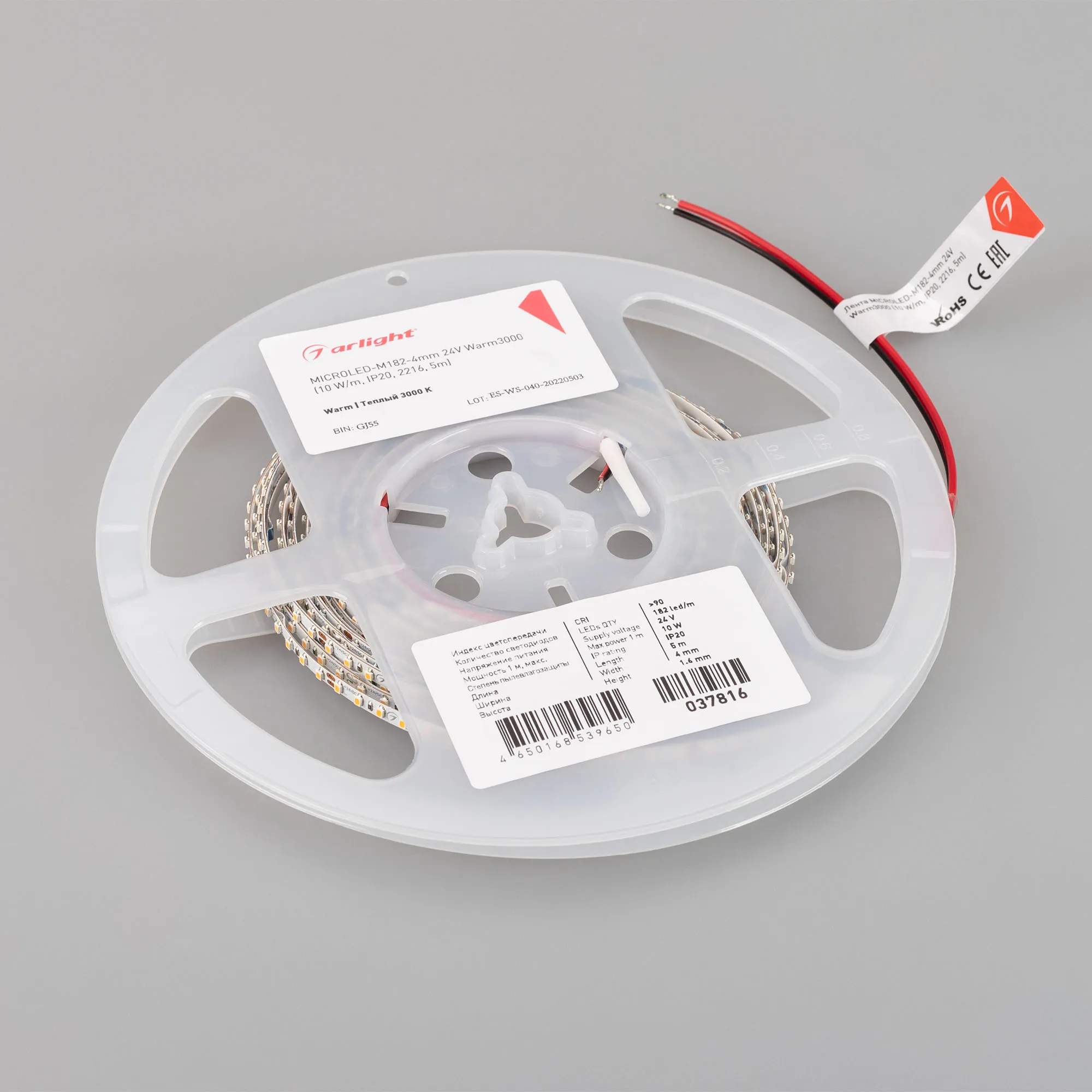 Лента светодиодная MICROLED-M182-4mm 24V Warm3000 (10 W/m, IP20, 2216, 5m) (Arlight, узкая)