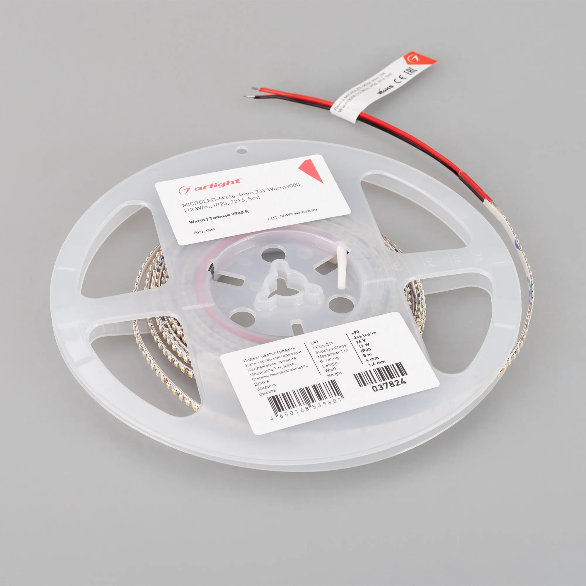 В магазине Мельковский Свет Вы можете купить "Лента светодиодная MICROLED-M266-4mm 24V Warm3000 (12 W/m, IP20, 2216, 5m) (Arlight, узкая)"
