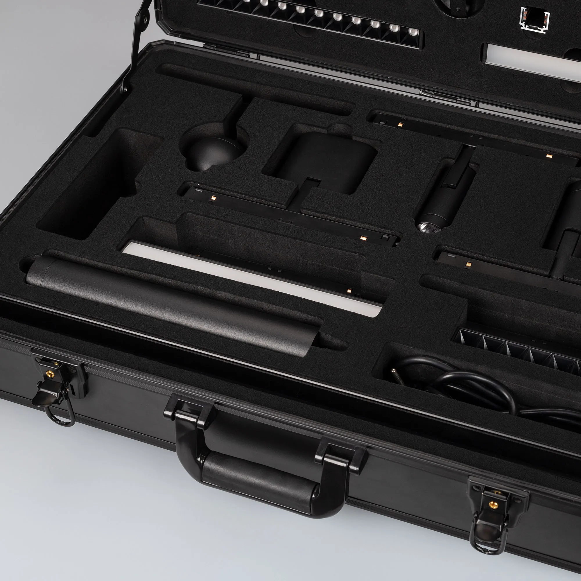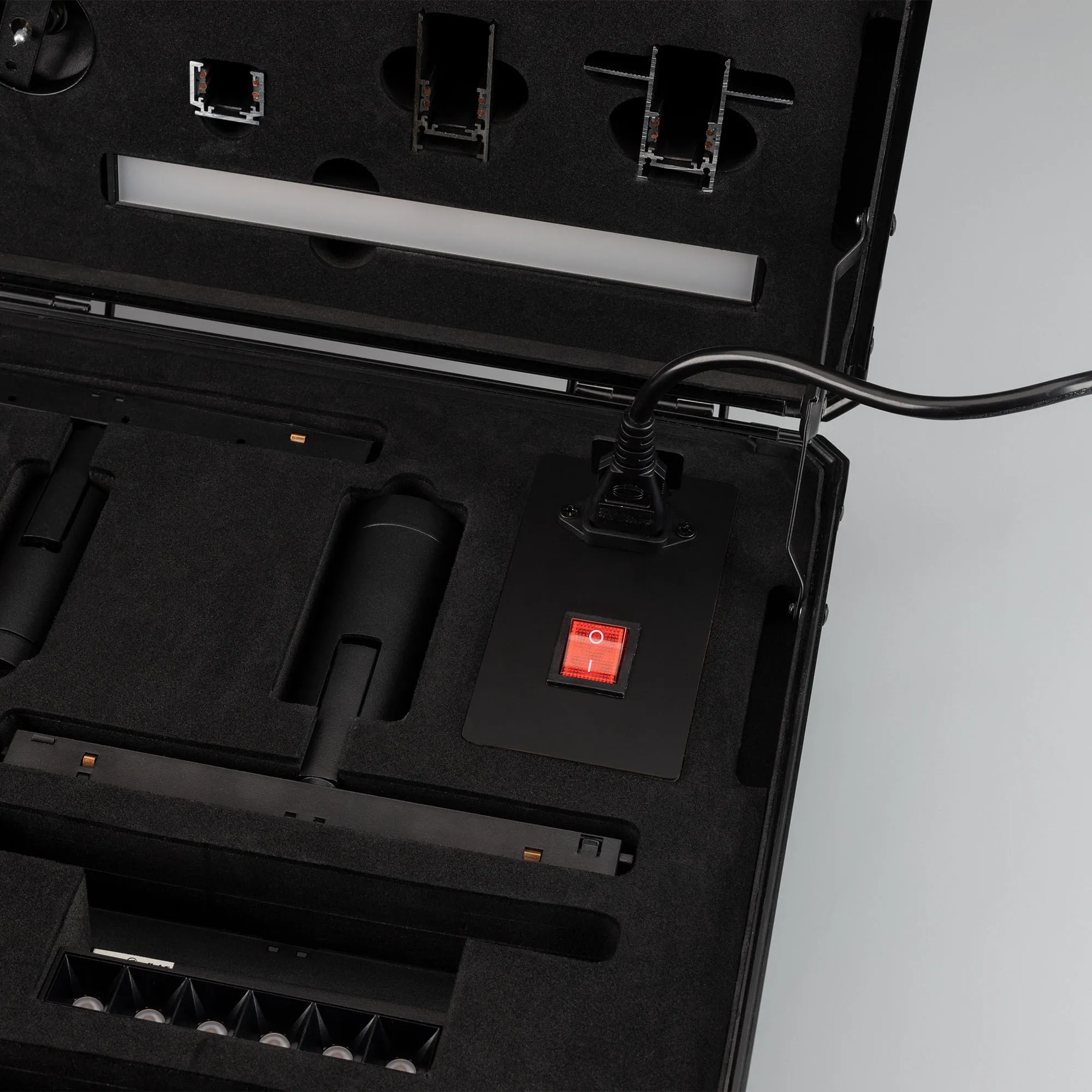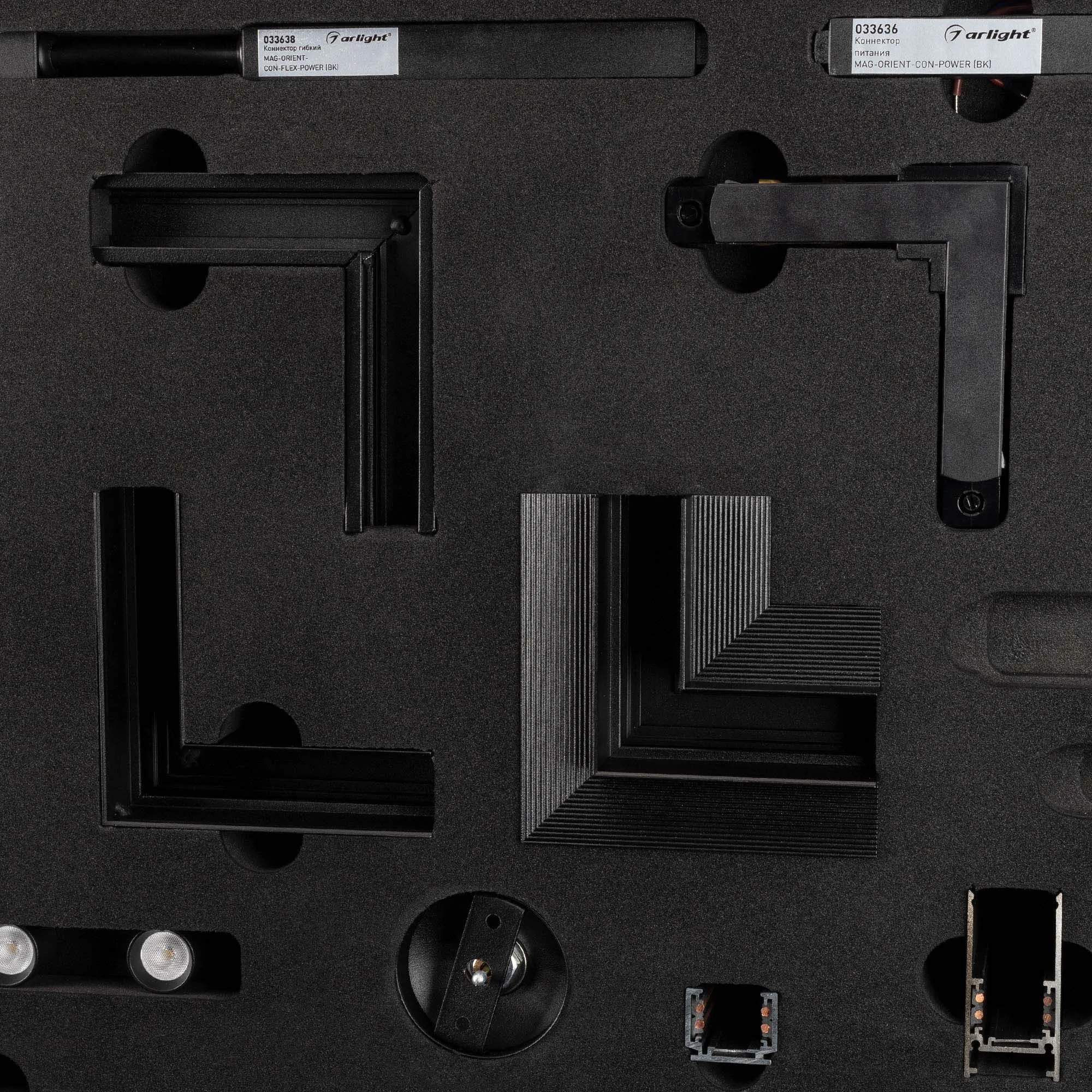 Демо-кейс для демонстрации компонентов магнитной системы MAG-ORIENT с возможностью электрического подключения светильников.