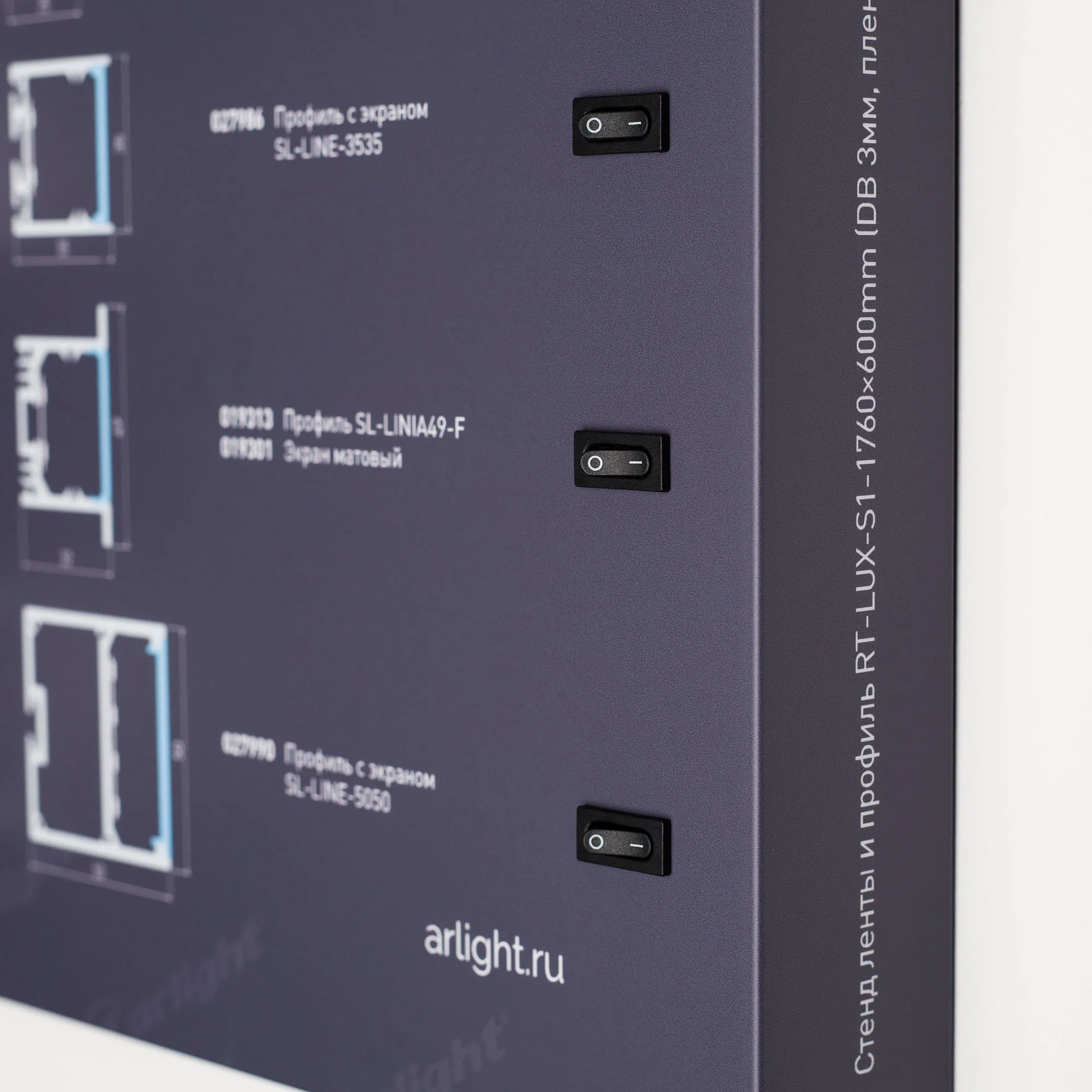 В магазине Мельковский Свет Вы можете купить "Стенд Ленты и Профиль RT-LUX-S1-1760x600mm (DB 3мм, пленка, подсветка) (Arlight, -)"