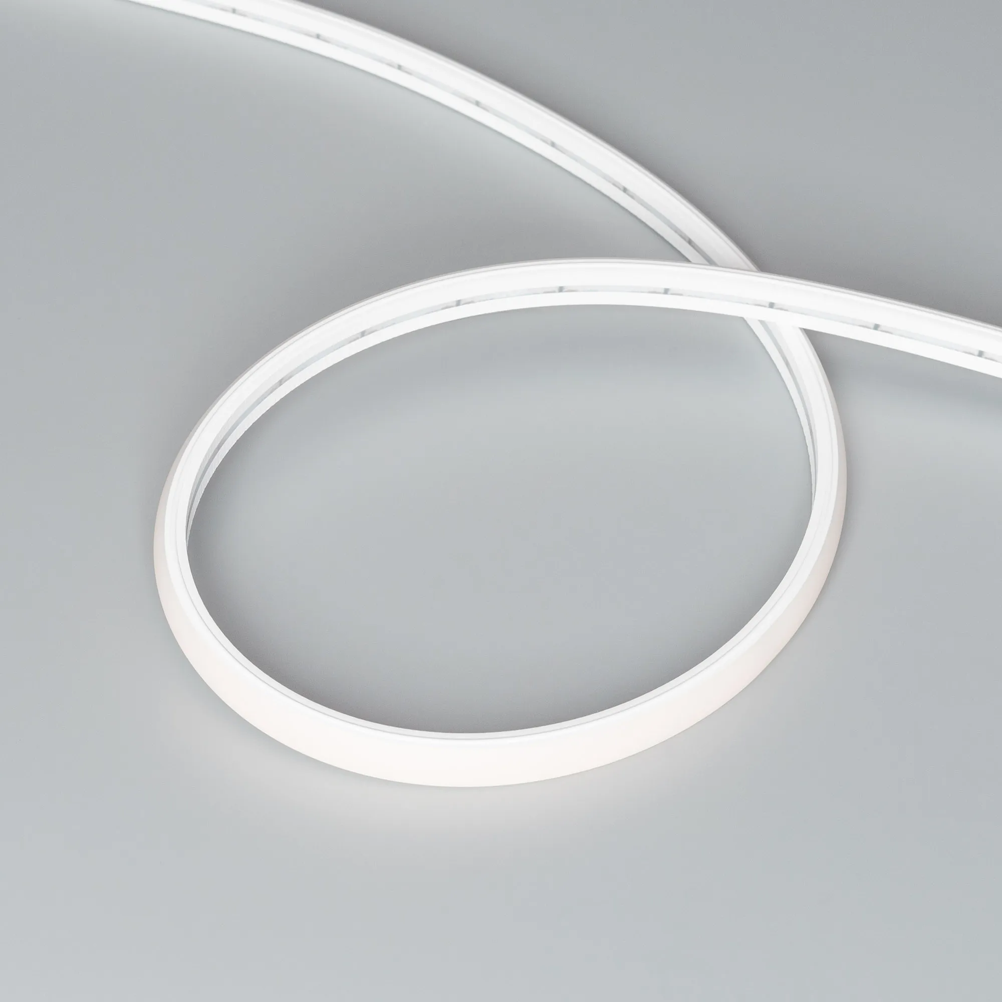 Гибкая герметичная лента (неон серии MOONLIGHT), сечение 11×7 мм. Светодиоды CSP 320 шт/м. Цвет свечения ТЁПЛЫЙ БЕЛЫЙ (3000 К), индекс цветопередачи CRI>90, световой поток 750 лм/м, угол излучения 120°. Мощность 10 Вт/м, питание 24 В. Класс пылевлагозащиты IP65. Размеры 5000×7×11 мм. Мин. отрезок 25 мм. Вертикальный изгиб TOP, минимальный радиус изгиба 60 мм. Вывод кабеля с двух сторон. Катушка 5 м. Цена за 1 м. Гарантия 3 года.