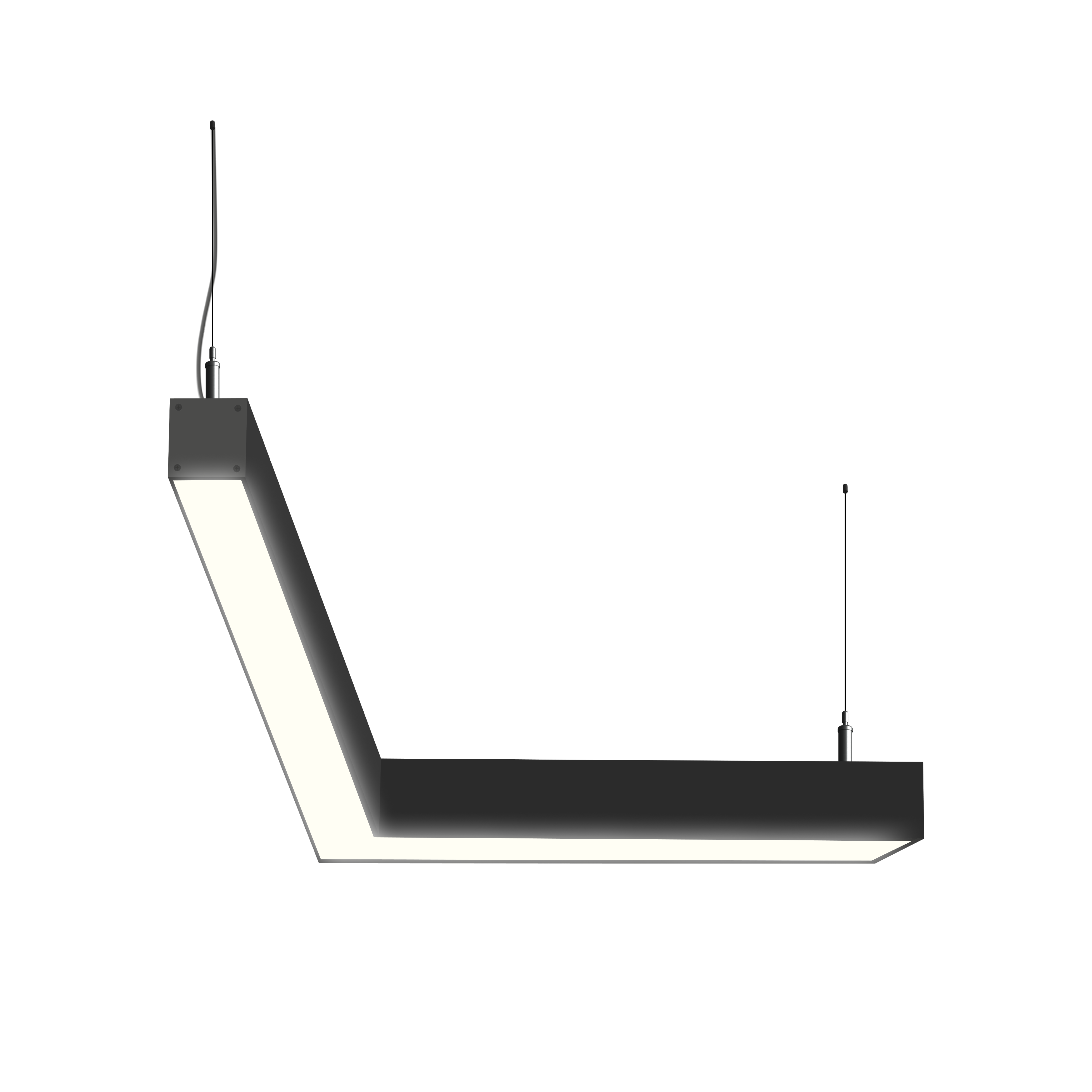 Светодиодный фигурный светильник MS-CORN L-образный 90гр. размер профиля 50х50мм длиной 1000х1000мм мощностью 40W. Светильник собирается в алюминиевом корпусе с матовым рассеивателем, который дает равномерную засветку по всей площади.