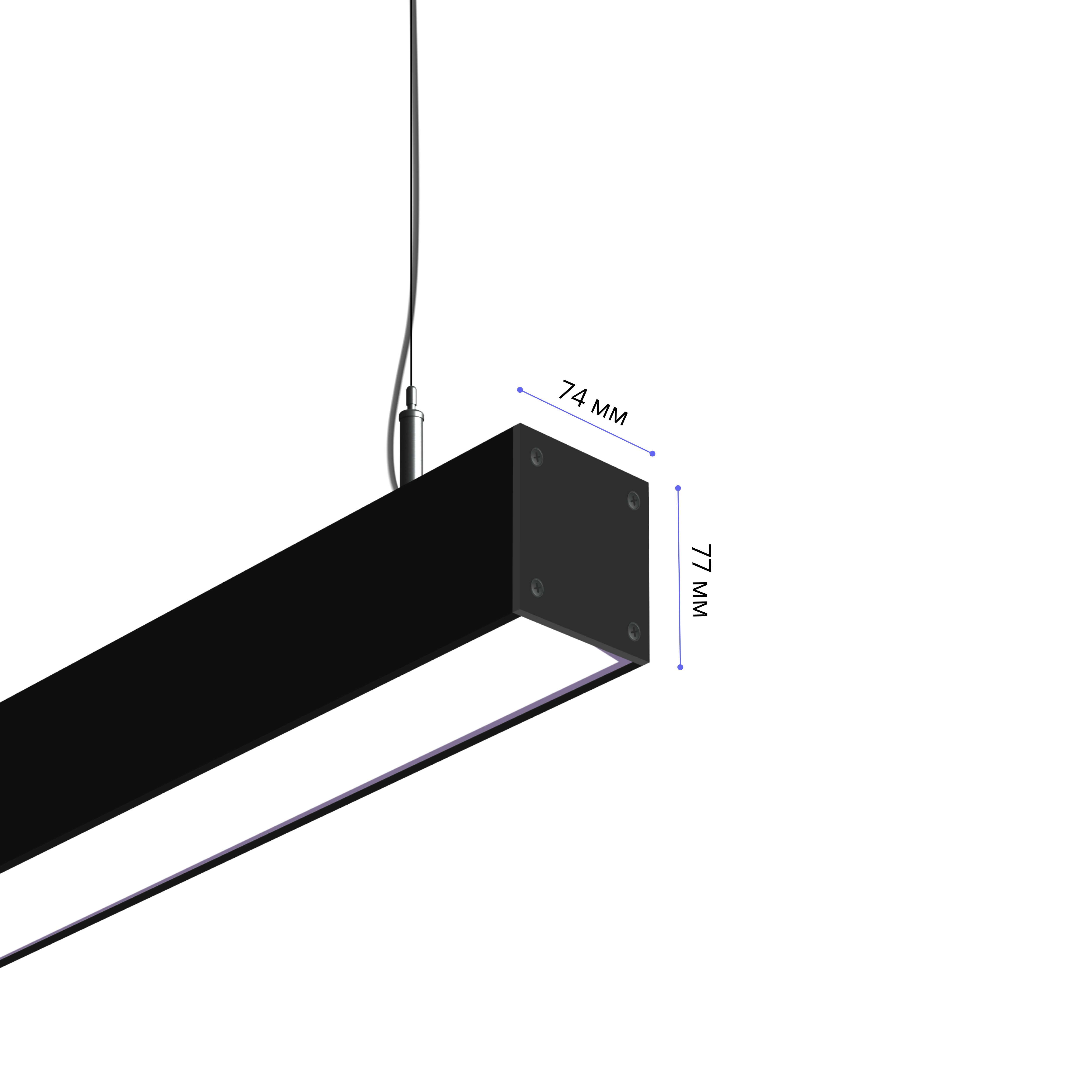 Подвесной светильник MS-LINEAR Линейный размер профиля 77х74мм длиной 3000мм мощностью 60W. Светильник собирается в алюминиевом корпусе с матовым рассеивателем, который дает равномерную засветку по всей площади.
