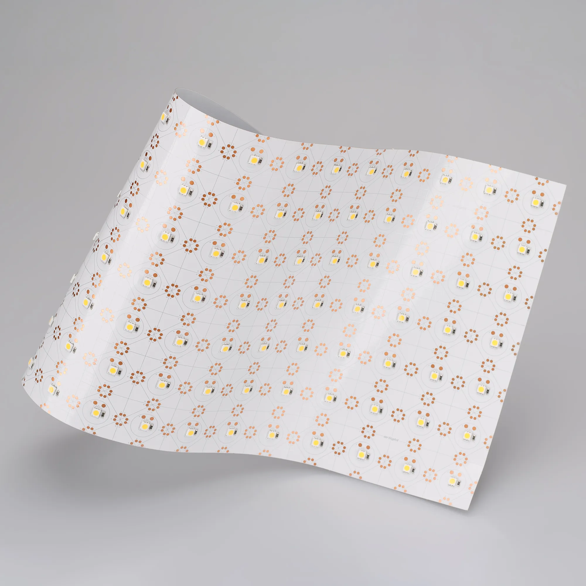 Светодиодный лист для равномерной засветки. Без 3М скотча. Цвет свечения КРАСНЫЙ. Питание 12VDC, мощность: лист - 22Вт, мин.1 сегмент-0.2Вт. Можно вырезать фигуры и буквы произвольной формы по линиям на плате. Подача питания в любой точке "+" и "-". Размер 500х235мм, мин.сегмент 34х34мм. Дополнительный теплоотвод не обязателен.