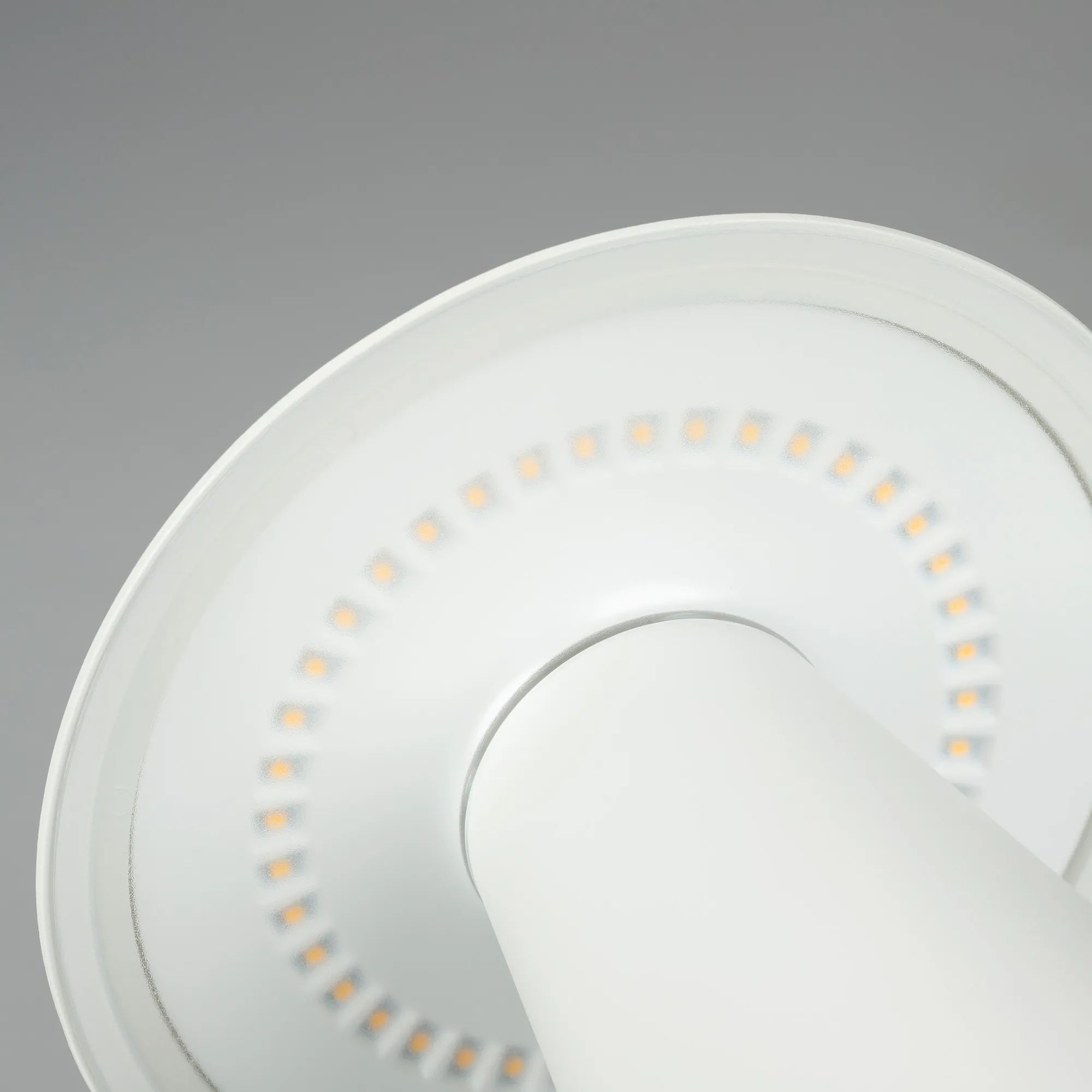 Настольный светильник со встроенным аккумулятором 2Вт, белый алюминиевый корпус. Цвет ТЕПЛЫЙ БЕЛЫЙ 3000K, св.поток 260лм, CRI(Ra)>80, угол 127°. Размер Ф197x292мм. IP54. Зарядка от сети переменного тока AC220-240V. Тип встроенного аккумулятора 4400мАч Li-ion, напряжение батареи 3.7V