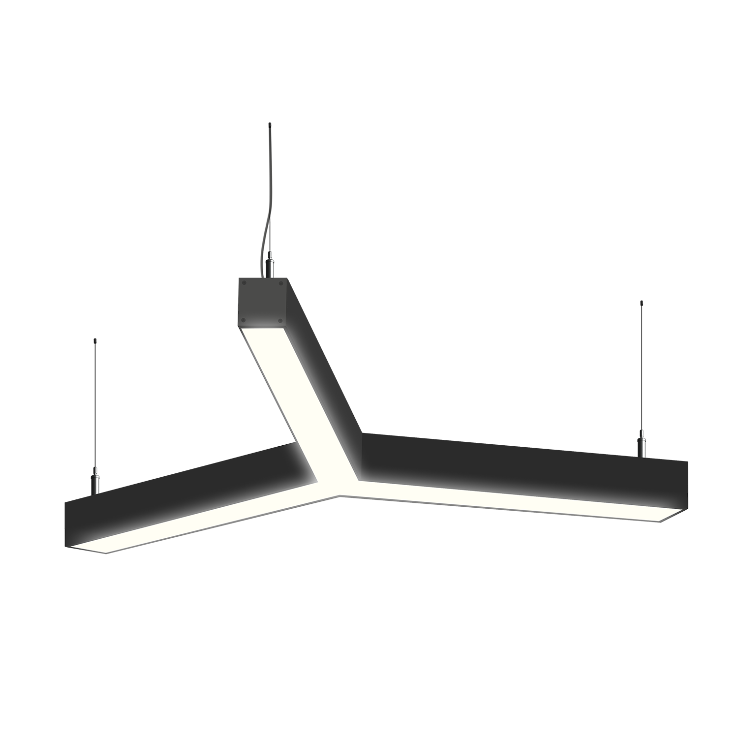 Cветодиодный фигурный светильник MS-TRINITY Y-образный размер профиля 50x50мм длиной 3х500мм мощностью 60W. Светильник собирается из алюминиевого основния с матовым рассеивателем, который дает равномерную засветку по всей площади.