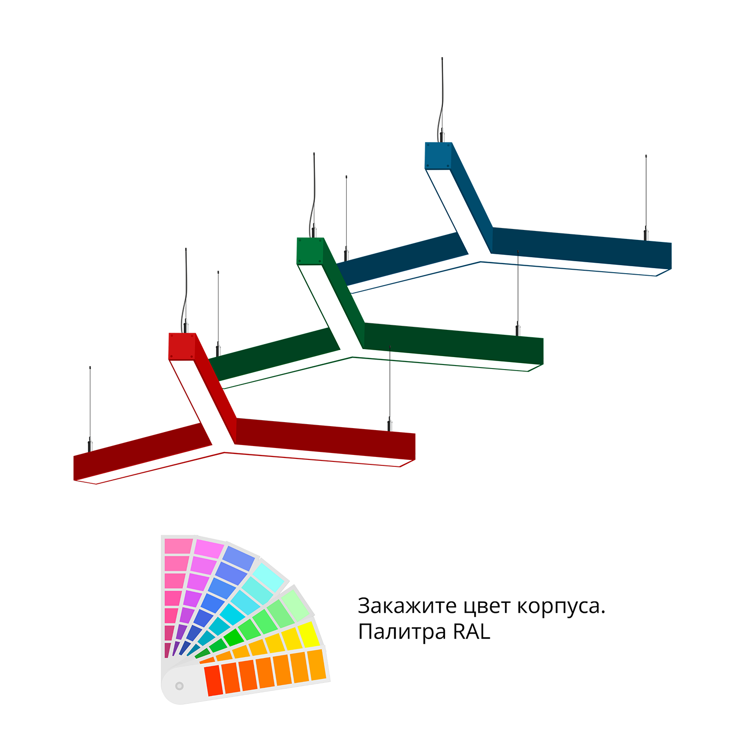 - Светильники доступны в базовых цветах: черный/серый/белый, дополнительно могут быть окрашены в любом цвете палитры RAL (уточняется у менеджера).