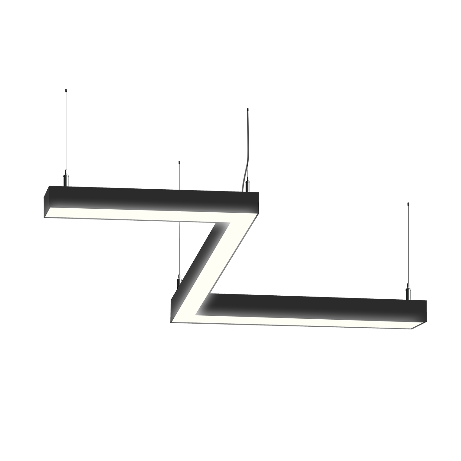 Cветодиодный фигурный светильник MS-ZIG Зигзаг размер профиля 50x50мм длиной 3х500мм мощностью 60W. Светильник собирается из алюминиевого основния с матовым рассеивателем, который дает равномерную засветку по всей площади.