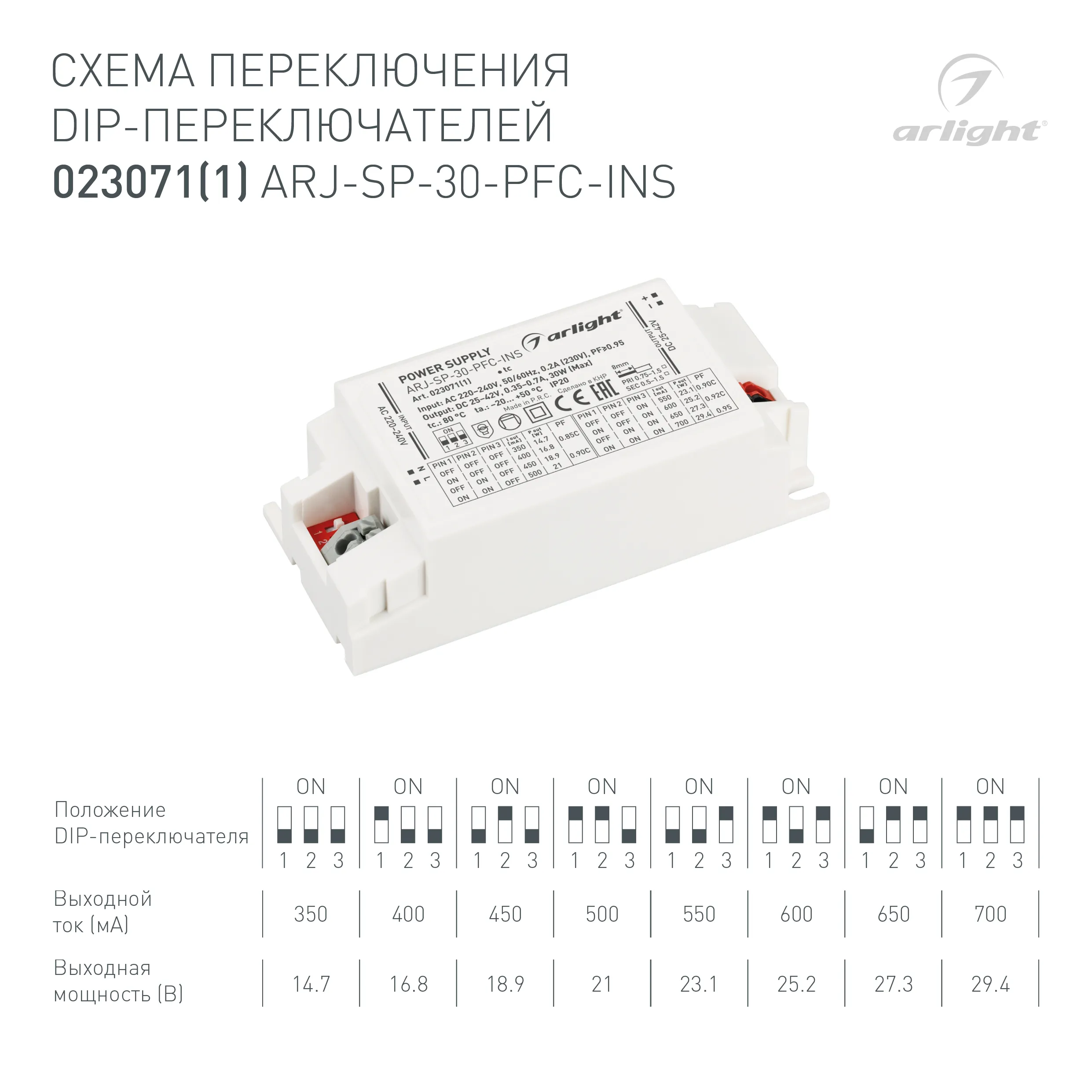 Наши специалисты знают все о продукции Arlight и с радостью помогут Вам выбрать комплектующие к товару "Блок питания ARJ-SP-30-PFC-INS (30W, 25-42V, 0.35-0.7A) (Arlight, IP20 Пластик, 5 лет)", или другие товары из раздела "регулировка DIP-переключателем".