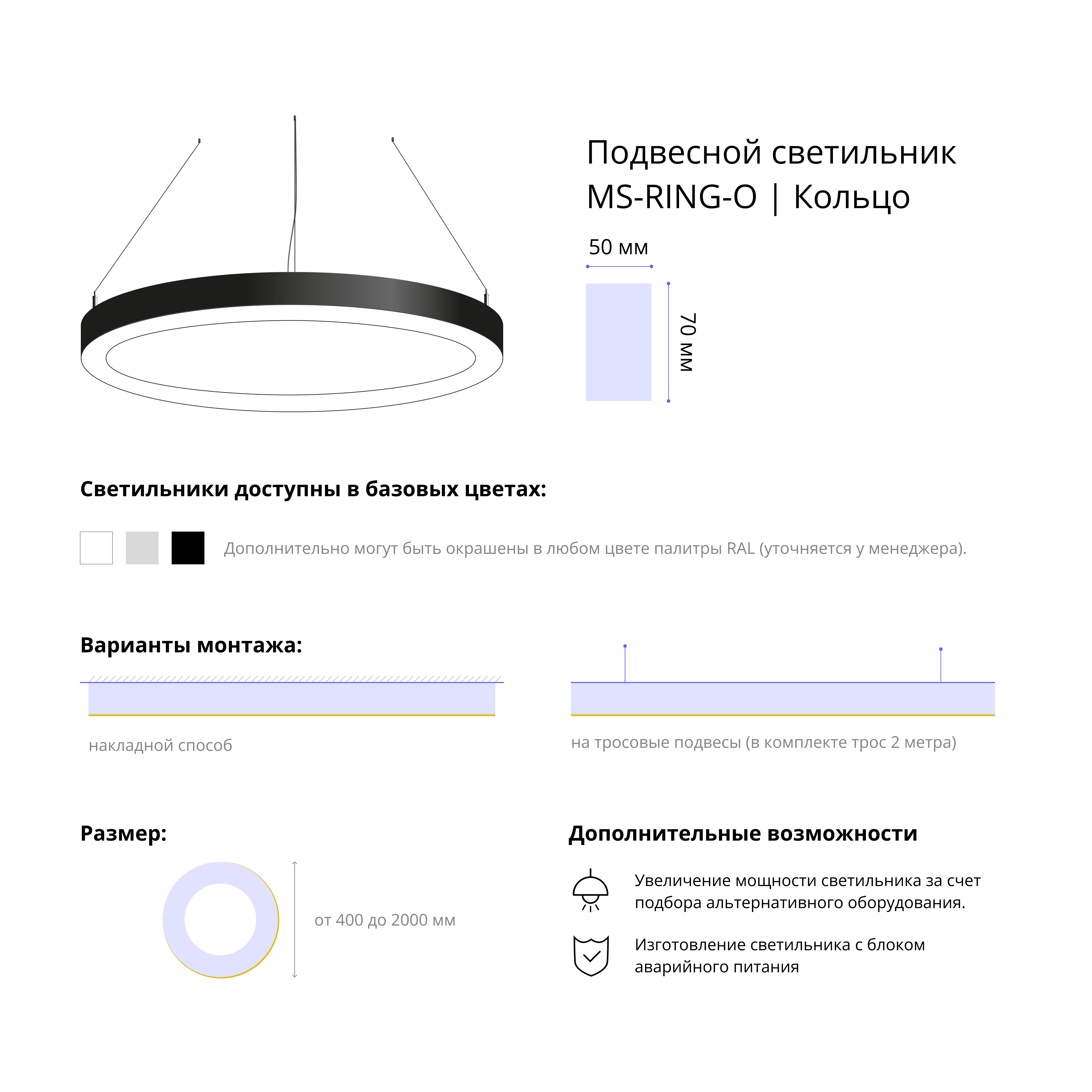 В магазине Мельковский Свет Вы можете купить "Светодиодный фигурный светильник MS-RING-O Кольцо 1100mm 55W 3000/4000/6000K"