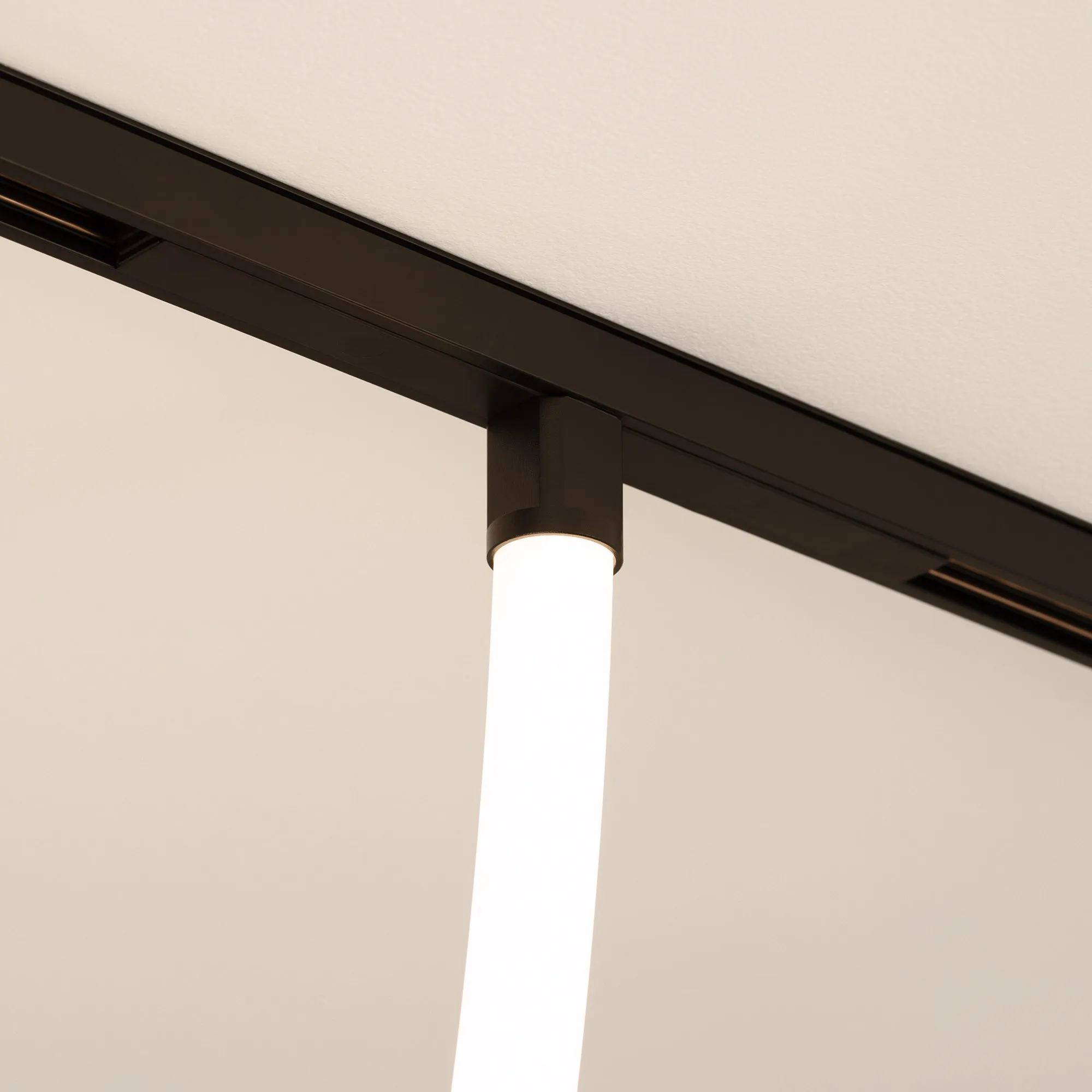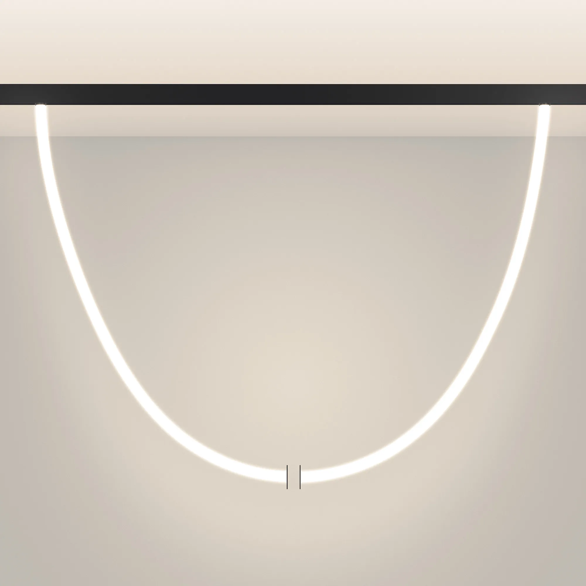 Светильник гибкий для магнитных треков серии ORIENT. Мощность 70 Вт, св. поток 4235 лм, 60 лм/Вт, теплый 3000 K, CRI>90, угол 360°, напряжение питания 48 В. Матовый белый фигурный корпус из силикона с черными креплениями. Размер: диаметр 25 мм, длина 5000 мм. Монтаж на магнитный трек ORIENT. Адаптеры входят в комплект.