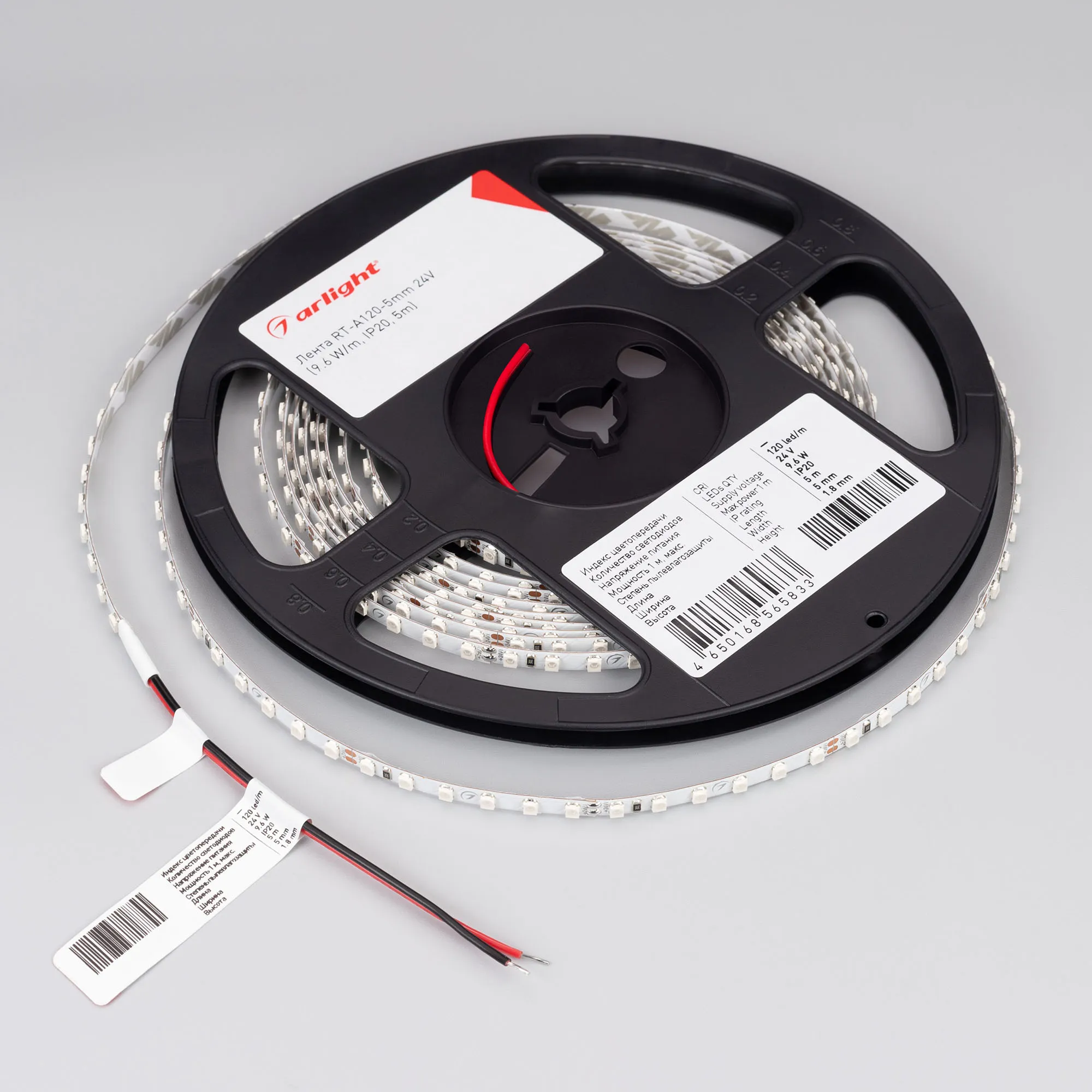 Лента светодиодная RT-A120-5mm 24V Blue (9.6 W/m, IP20, 5m) (Arlight, 9.6 Вт/м, IP20)
