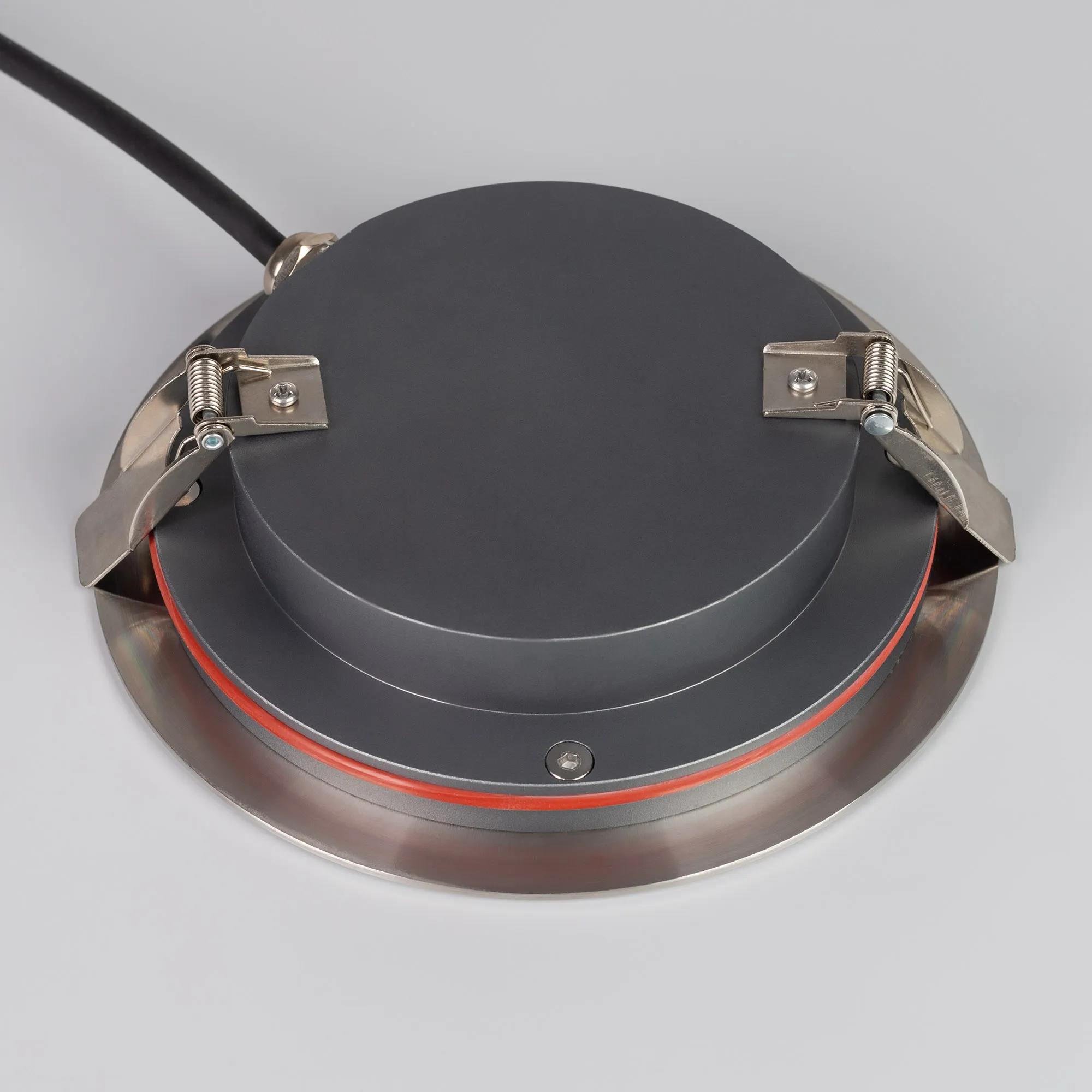 Встраиваемый светодиодный светильник для грунта и пола. Мощность 15Вт, угол освещения 30°, световой поток 1050лм, цвет ТЕПЛЫЙ 3000К, CRI(Ra)>80. Круглый влагозащищенный корпус IP67, внешняя рамка из нержавеющей стали AISI 316. Экран закалённое стекло. Питание 24V, 15Вт. Размер Ø160x38мм. Установка в отверстие Ø148x35мм. ВНИМАНИЕ! Светильник не поддерживает регулирование светового потока ШИМ. Комплект установки в грунт/пол в комплекте,