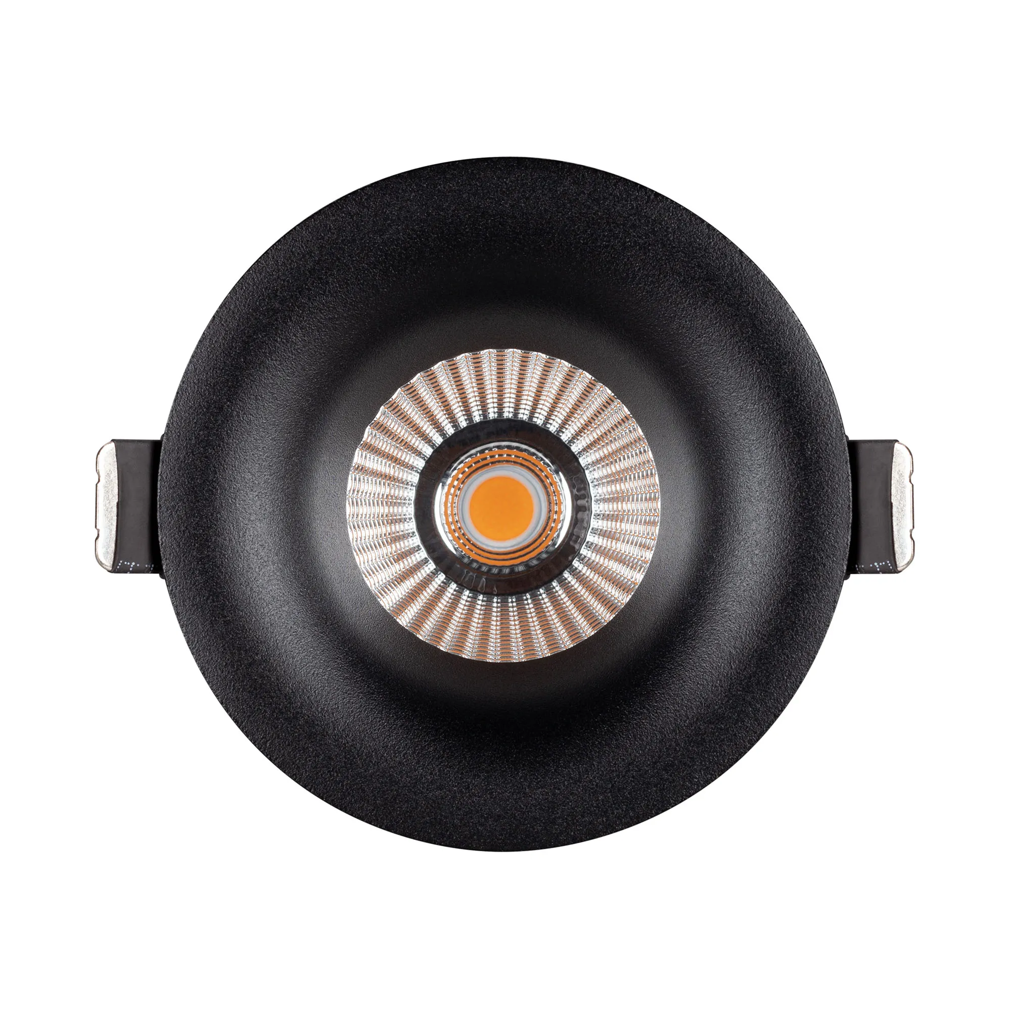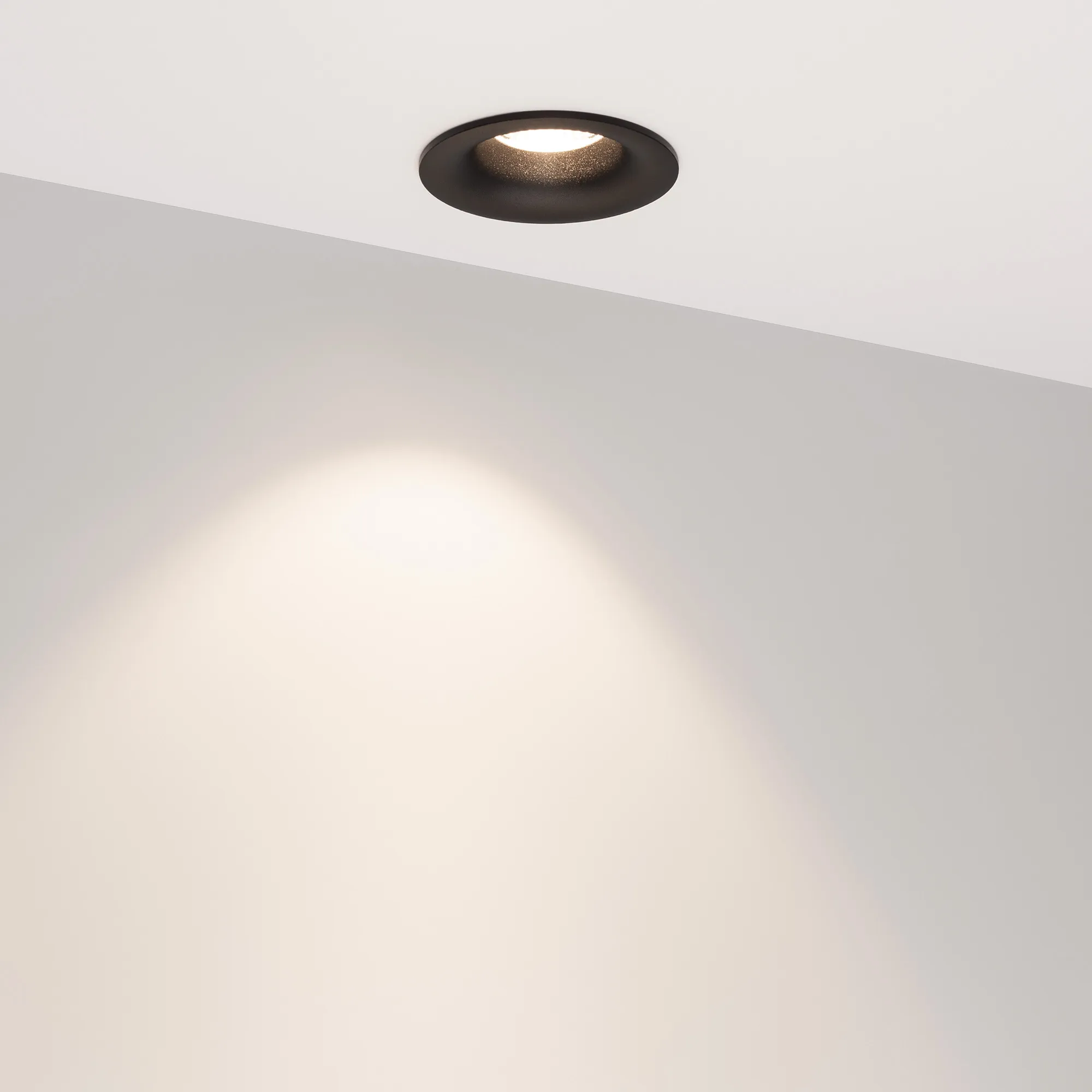 Встраиваемый светильник даунлайт. Мощность 10 Вт, св. поток 880 лм, 88 лм/Вт, дневной 4000 K, CRI>90, угол 36°, напряжение питания 230 В. Черный круглый корпус из алюминия, экран PMMA, степень защиты IP54. Размер: диаметр 86 мм, высота 80 мм. Монтаж встраиваемый, установочное отверстие: диаметр 75 мм. Драйвер IP54, 20-40 В, 250 мА, пульсация <1%.