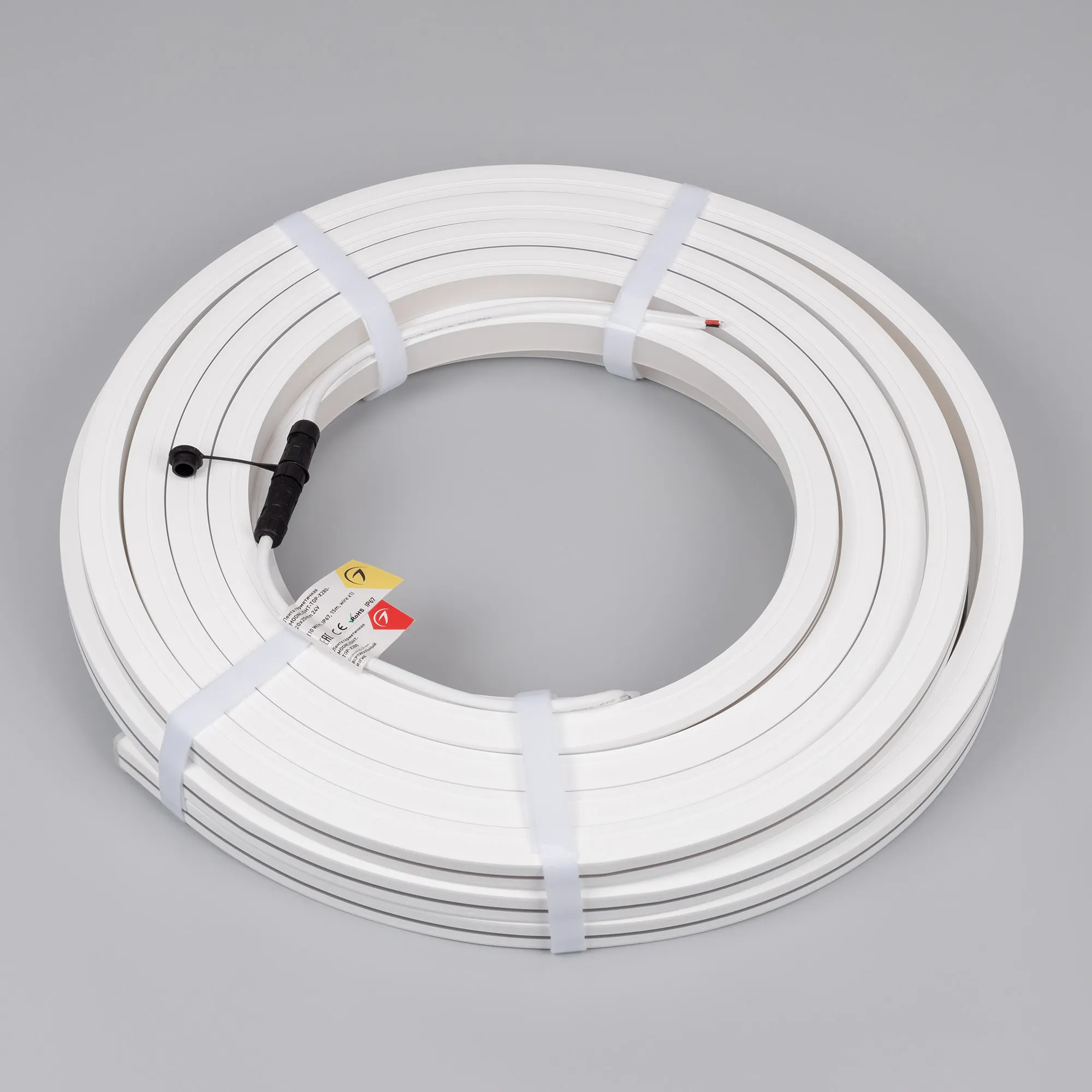 Гибкая герметичная лента (неон серии MOONLIGHT), сечение 20×20 мм. Светодиоды CSP 280 шт/м. Цвет свечения ТЕПЛЫЙ (2700К), индекс цветопередачи CRI>90, световой поток 460 лм/м, угол излучения 114°. Мощность 10 Вт/м, питание 24 В. Класс пылевлагозащиты IP67. Размеры 15000×20×20 мм. Мин. отрезок 50 мм. Вертикальный изгиб TOP, минимальный радиус изгиба 180 мм. Катушка 15 м. Цена за 1 м. Гарантия 5 лет.