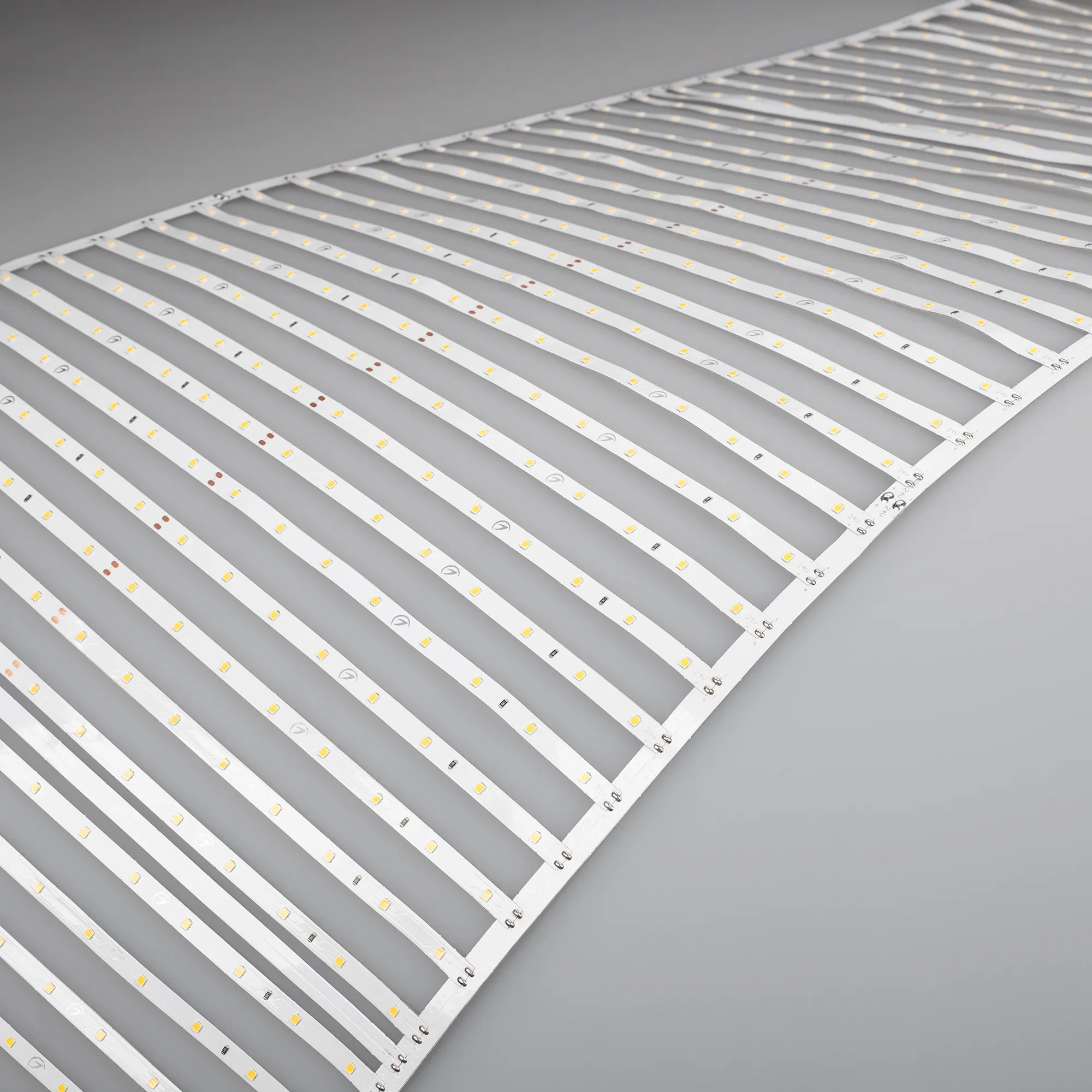 Лента-сеть из шести сегментов по 20 линий, соединенных между собой платой длиной 500 мм, расстояние между центрами линий 25мм, общая длина сети 3000 мм, светодиоды smd 2835, 640 шт/м (1920шт на 3м), белая плата 8мм, скотч 3М. Цвет ДНЕВНОЙ 3900-4000K Напряжение питания 24В, мощность 43,6 Вт/м (130,8 Вт на 3м), угол 120° CRI>85. Шаг резки 500 мм. Размеры сегмента 500х410х1,2 мм (320 светодиодов) Размер 3000х410х1,2 мм. Цена за 1 м. Дополнительный теплоотвод не обязателен.