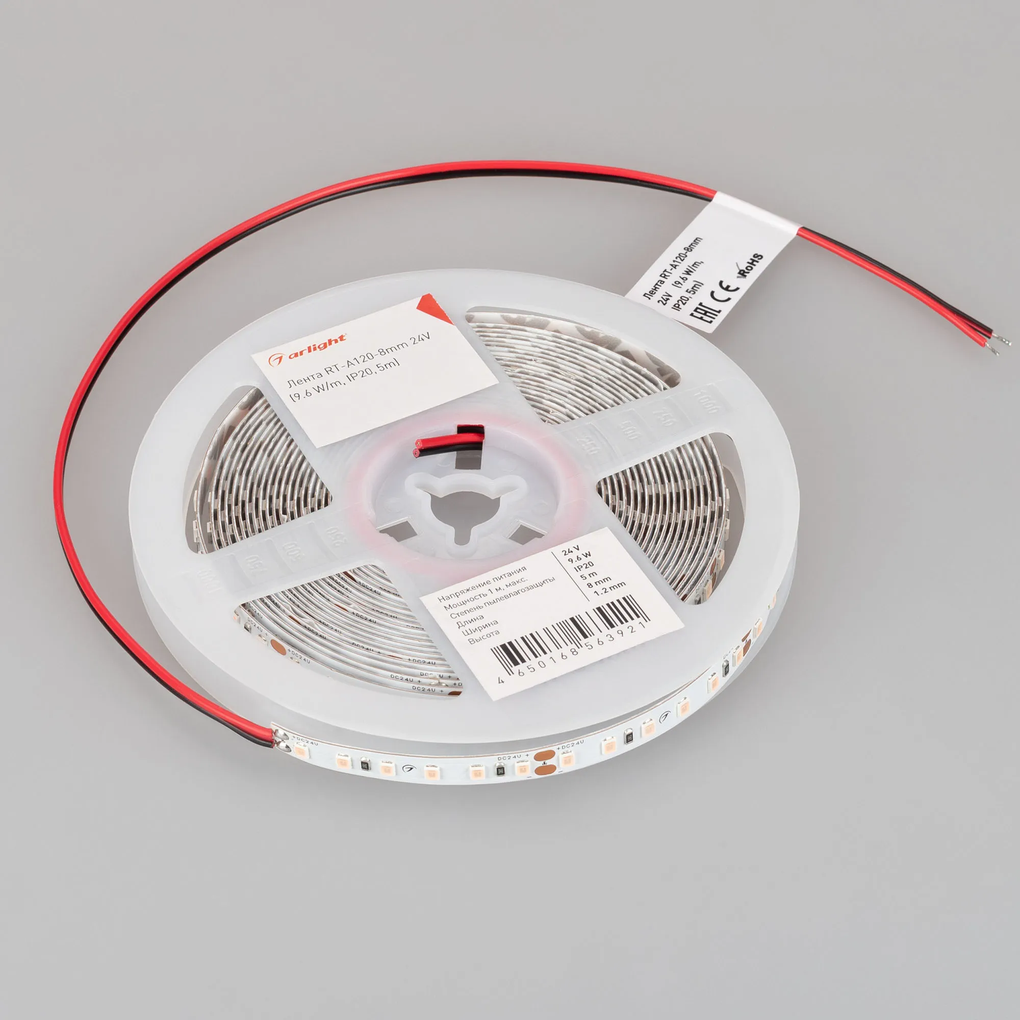 Лента светодиодная RT-A120-8mm 24V Peach Fuzz (9.6 W/m, IP20, 5m) (Arlight, -)