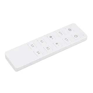 Кнопочный радиопульт ZigBee белого цвета для управления одноцветными (DIM) и мультибелыми (MIX) источниками света. 1 зона управления, 4 сцены, управление яркостью и цветовой температурой с помощью кнопок. Питание 3VDC (CR2032). Габариты 135x40x11 мм. Изготовлен из пластика. Управляет устройствами ZigBee (поставляются отдельно).