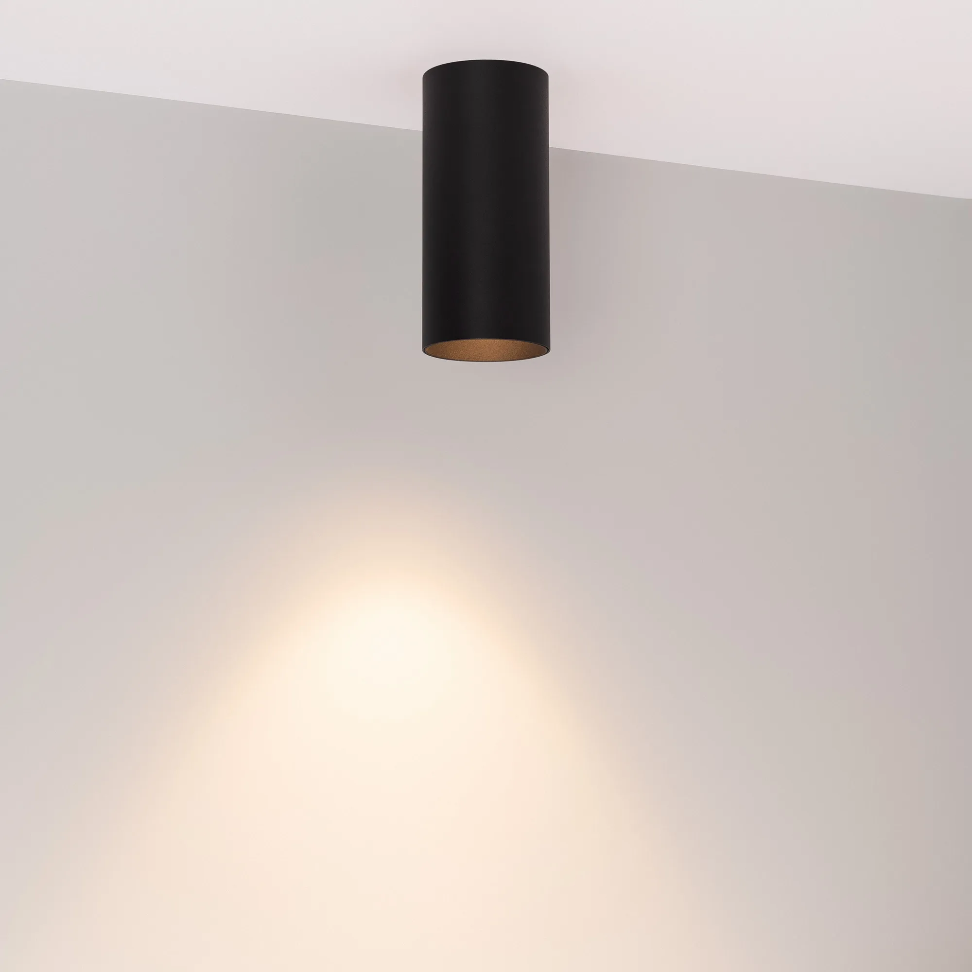 Накладной светильник. Мощность 9 Вт, св. поток 560 лм, 62 лм/Вт, теплый 3000 K, CRI>90, угол 36°, напряжение питания 230 В. Чёрный круглый корпус из алюминия, экран PMMA, степень защиты IP40. Размер: диаметр 50 мм, высота 110 мм. Монтаж накладной. Встроенный драйвер 27-40 В, 200 мА, пульсация <1 %.