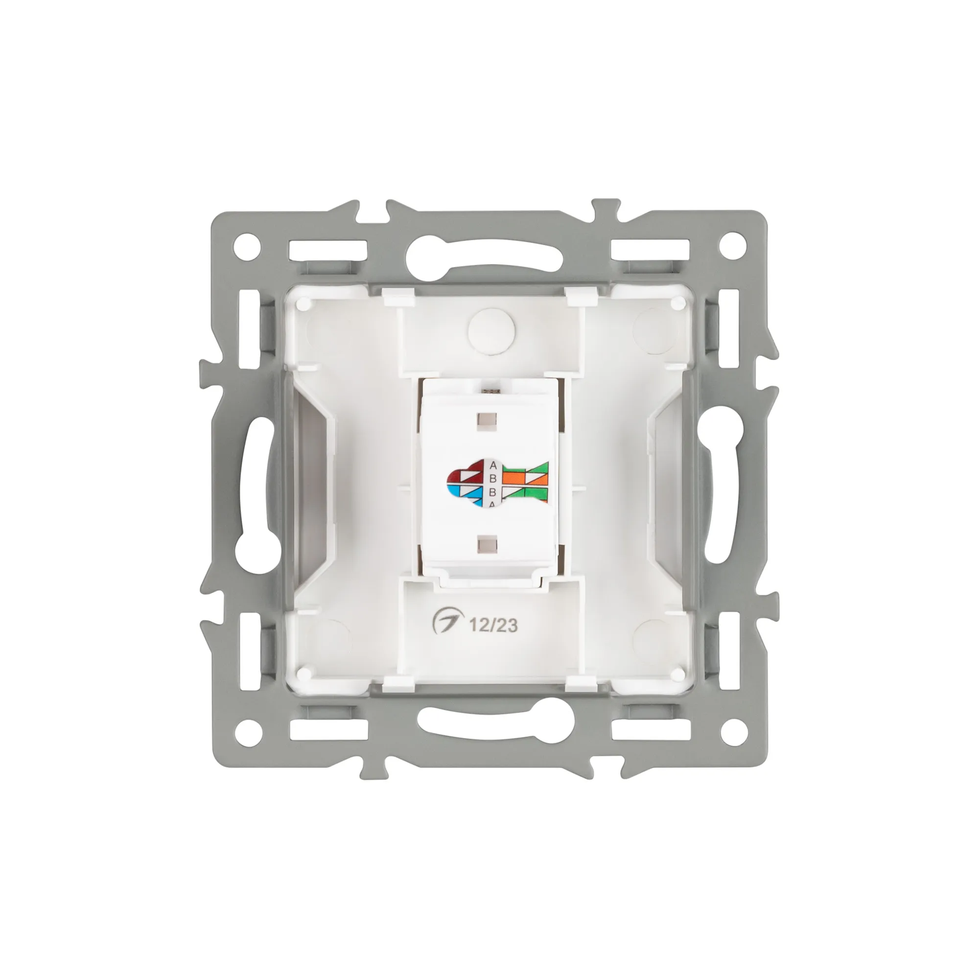 Механизм компьютерной розетки на 1 пост 6-й категории (CAT6), с суппортом из алюминия. Цвет - белый. Степень пылевлагозащиты - IP20.