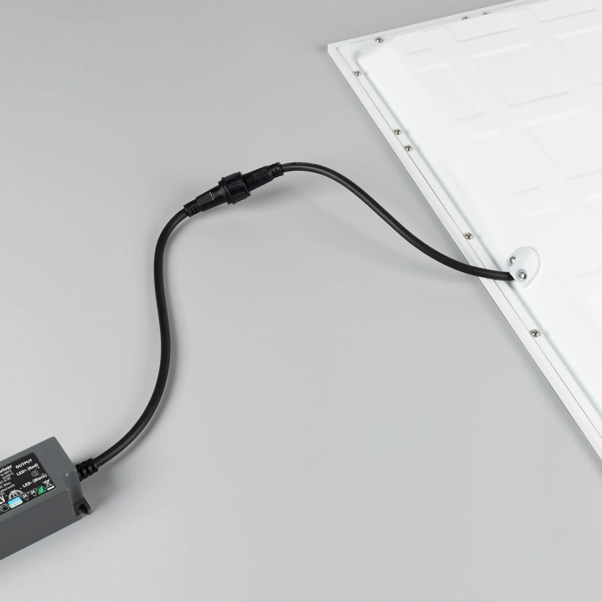 Светодиодная панель с прямой засветкой (backlit). Мощность 40 Вт, св. поток 4000 лм, 100 лм/Вт, дневной 4000 K, CRI>90, угол 120°, напряжение питания 230 В. Белый квадратный корпус из алюминия, экран PS, степень защиты IP54. Размер: длина 595 мм, ширина 595 мм, высота 31,3 мм. Монтаж встраиваемый, установочное отверстие длина 575 мм, ширина 575 мм. Драйвер 28-42 В, 1000 мА, пульсация <1% со степенью защиты IP65, подключение с помощью герметичного коннектора.