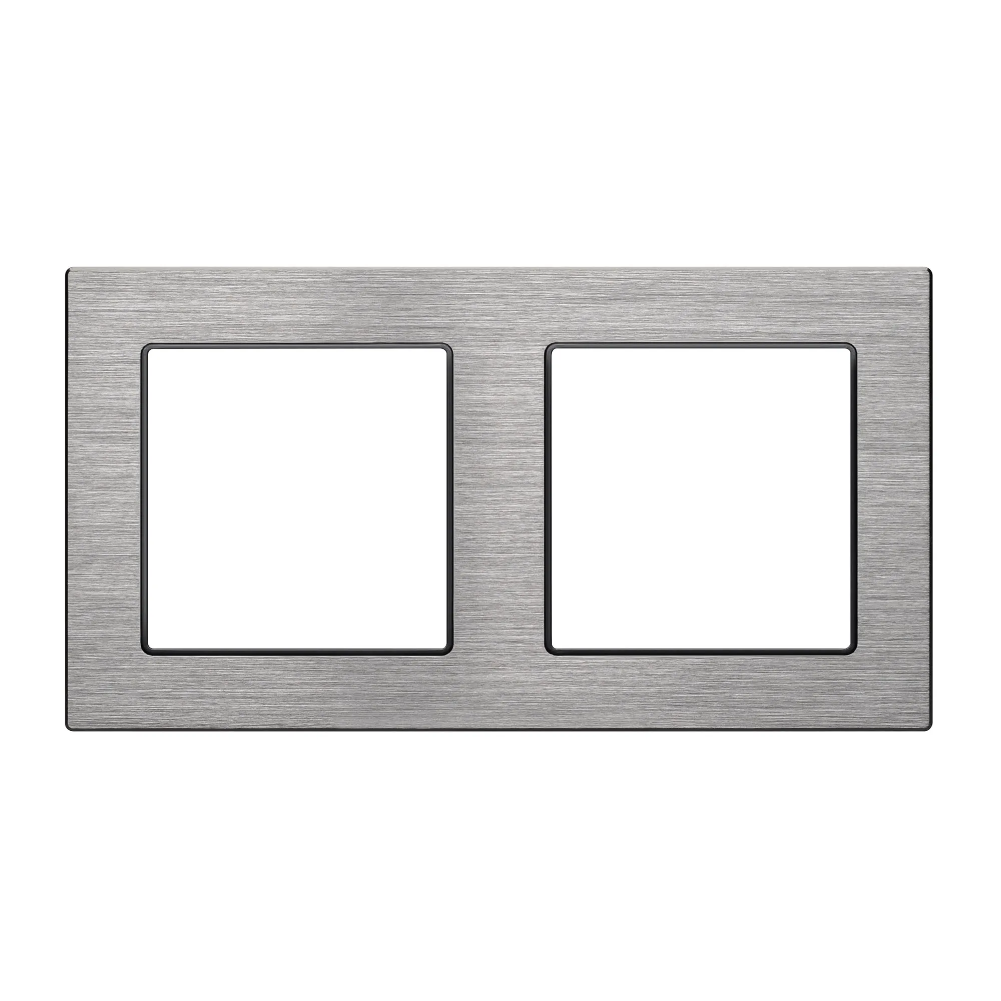 Рамка алюминиевая на 2 пост, под встраиваемый механизм (квадрат). Цвет - серый. Ориентации монтажа - горизонтальная/вертикальная.