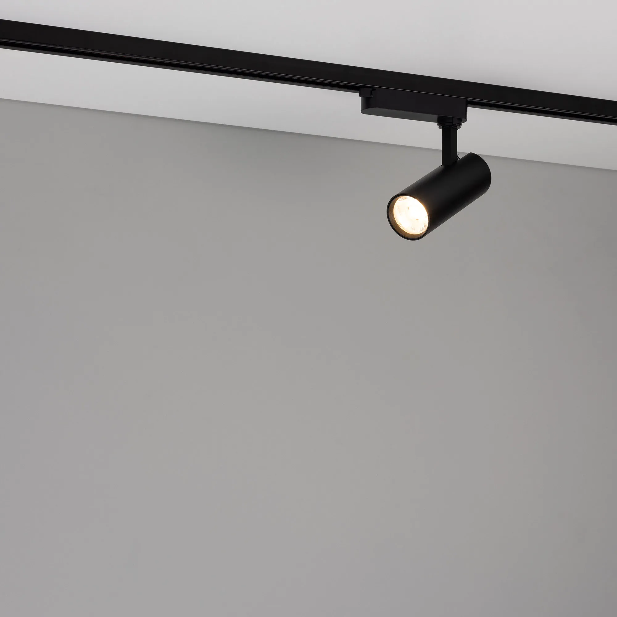 Светильник для треков/шин 2 провода. Мощность 10 Вт, св. поток без решетки honeycomb 1000 лм, 100 лм/Вт, с решеткой honeycomb 660 лм, 66 лм/Вт, теплый 3000 K, CRI>90, угол 15°, напряжение питания 230 В. Черный круглый корпус из алюминия, материал линзы PMMA, степень защиты IP20. Размер: диаметр 55 мм, длина световой части 141 мм. Монтаж на трек 1-фазный. Драйвер встроенный 25-40 В, 250мА., пульсация <5%.