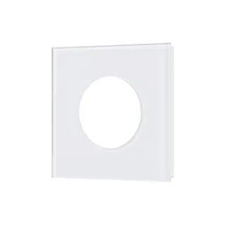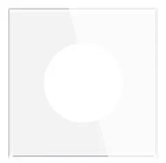 Рамка стеклянная на 1 пост, под встраиваемый механизм. Вырез под функциональную часть круг*. Цвет - белый. Ориентации монтажа - горизонтальная.
