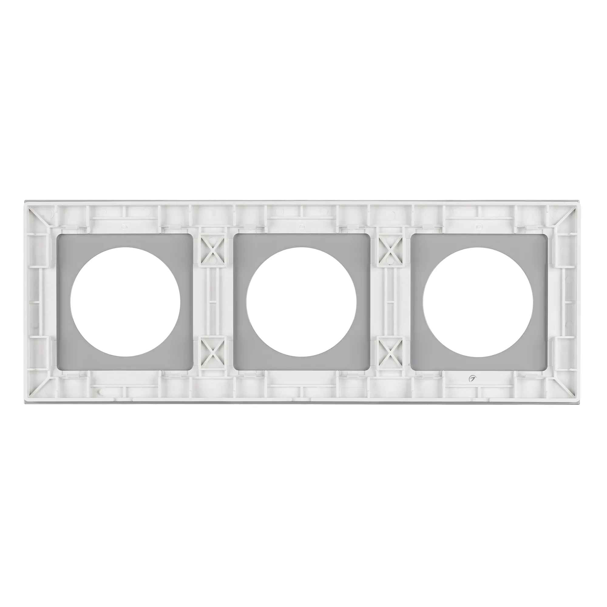 Рамка стеклянная на 3 поста, под встраиваемый механизм. Вырез под функциональную часть круг. Цвет - белый. Ориентации монтажа - горизонтальная.